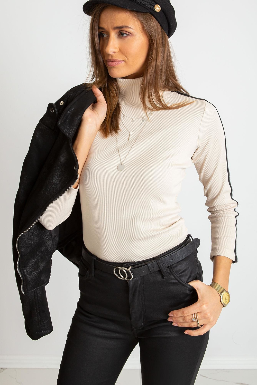 < p>Modelis dėvi S dydį. Modelio išmatavimai: ūgis 176 cm, krūtinė 85 cm, juosmuo 64 cm, klubai 92 cm.