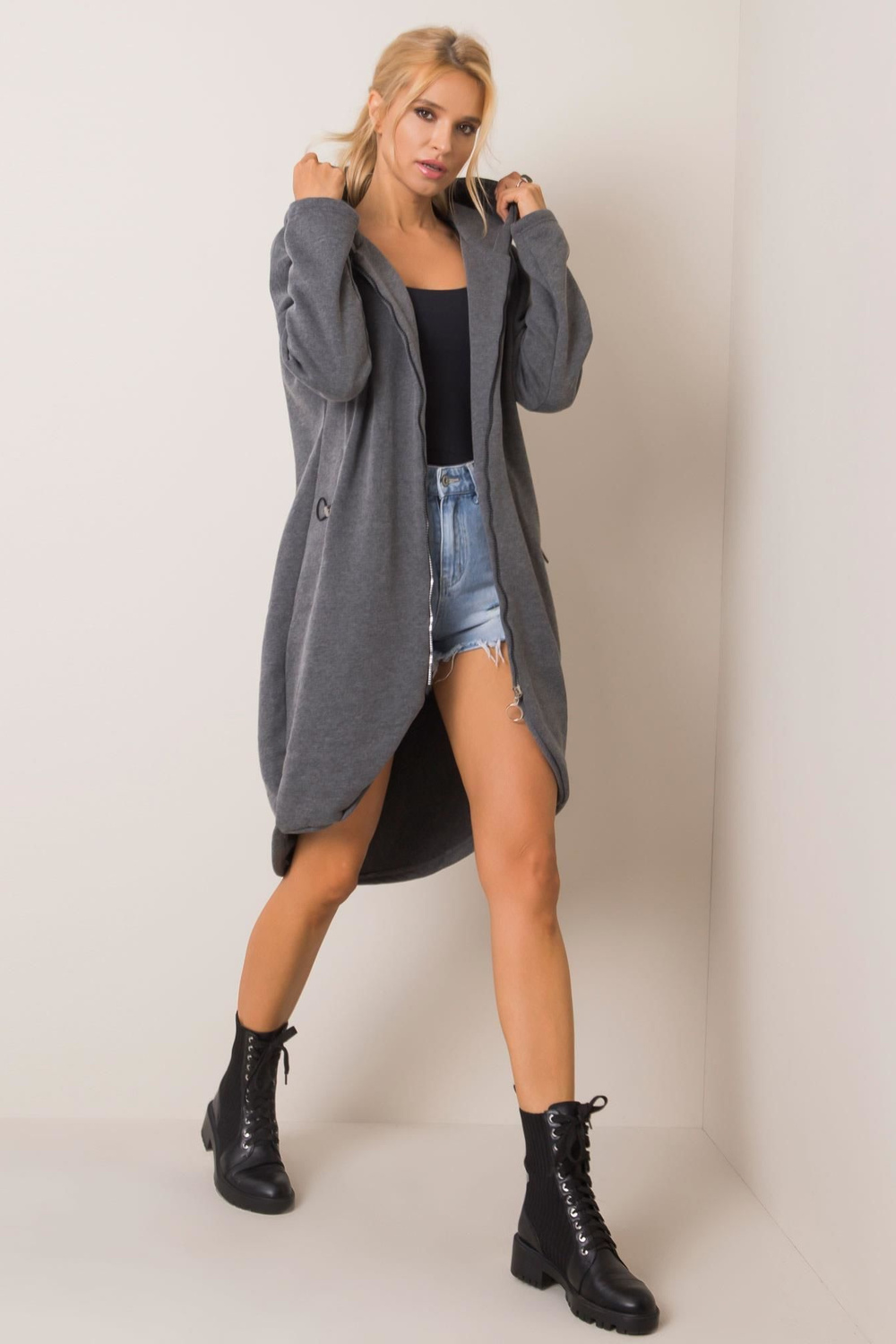 Tamsiai pilkos spalvos megztinis Tina RUE PARIS. medžiagos sudėtis: 90% medvilnė, 10% elastanas skalbimo būdas: skalbimas mašinoje 30°C. Modelis dėvi S/M dydį. Modelio matmenys: aukštis 175 cm, krūtinė 84 cm, juosmuo 65 cm, klubai 92 cm. Dydžio megztinio matmenys