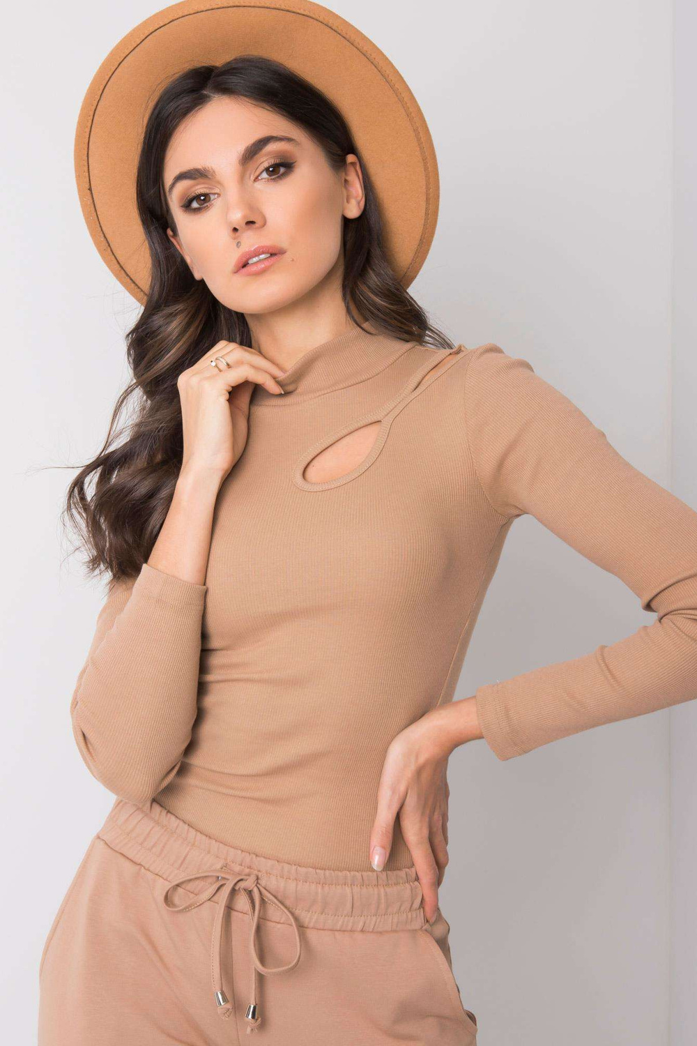 Camelblouse Neva RUE PARIS. medžiagos sudėtis: 90% medvilnė, 10% elastanas skalbimo būdas: skalbimas mašinoje 30°C Modelis dėvi S dydį. Modelio matmenys: aukštis 175 cm, krūtinė 85 cm, juosmuo 65 cm, klubai 89 cm. S dydžio palaidinės matmenys