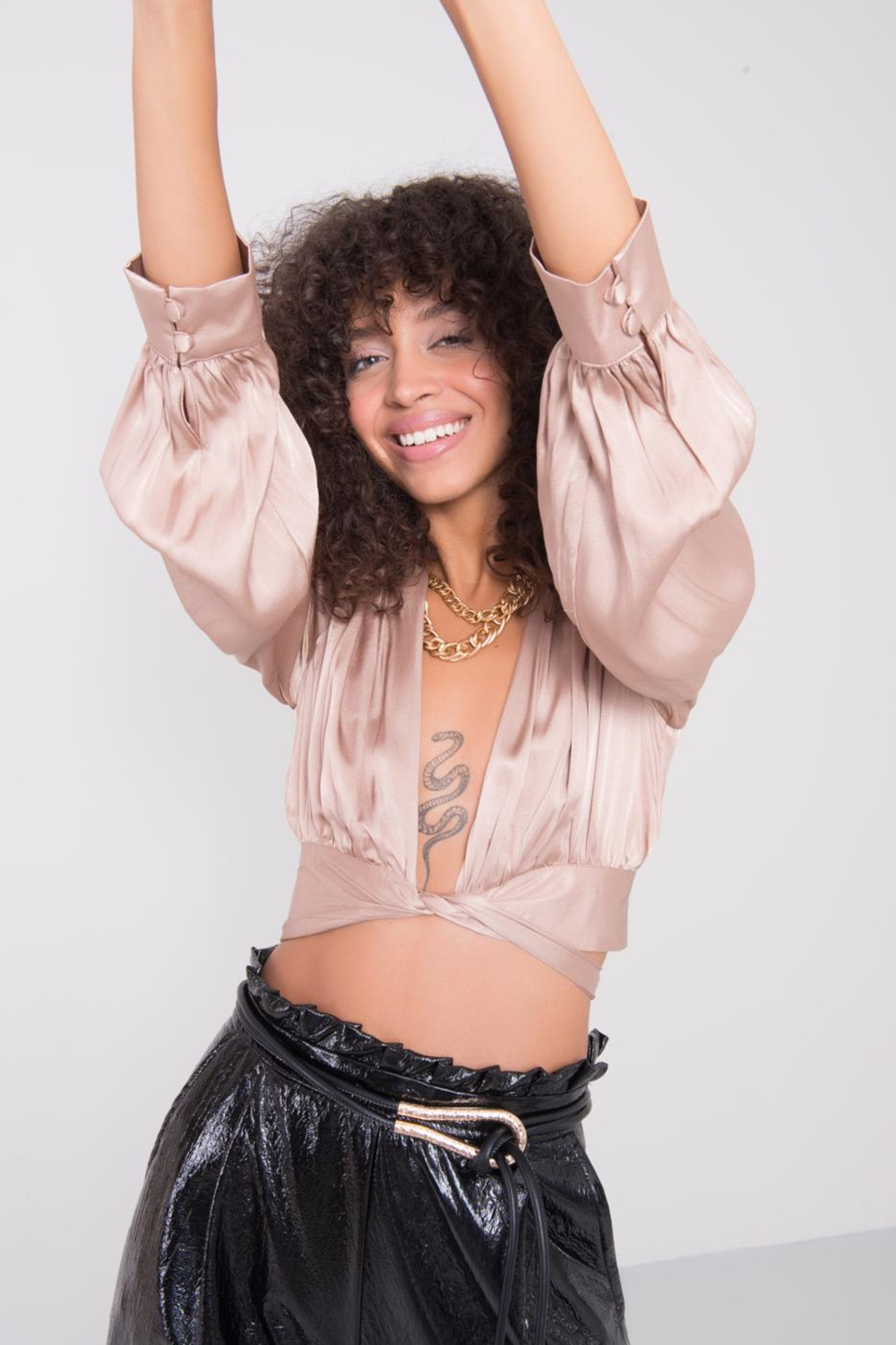 Modelis dėvi S dydį. Modelio matmenys: ūgis 175 cm, krūtinė 89 cm, juosmuo 64 cm, klubai 92 cm.< /font>