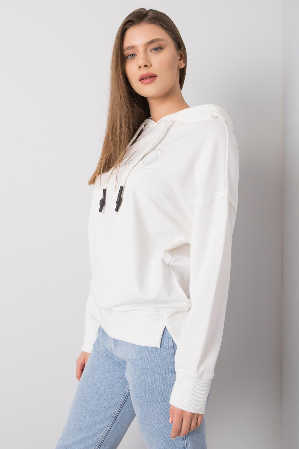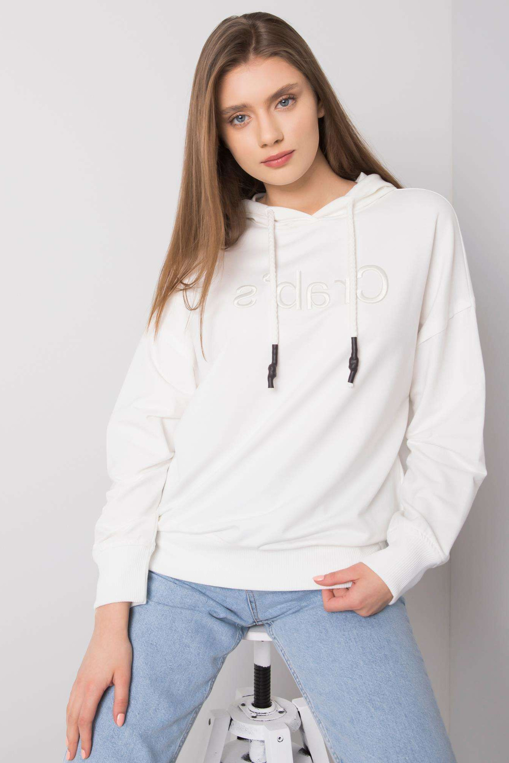 Modelis dėvi S dydį. Modelio matmenys: ūgis 177 cm, krūtinė 90 cm, juosmuo 62 cm, klubai 90 cm.