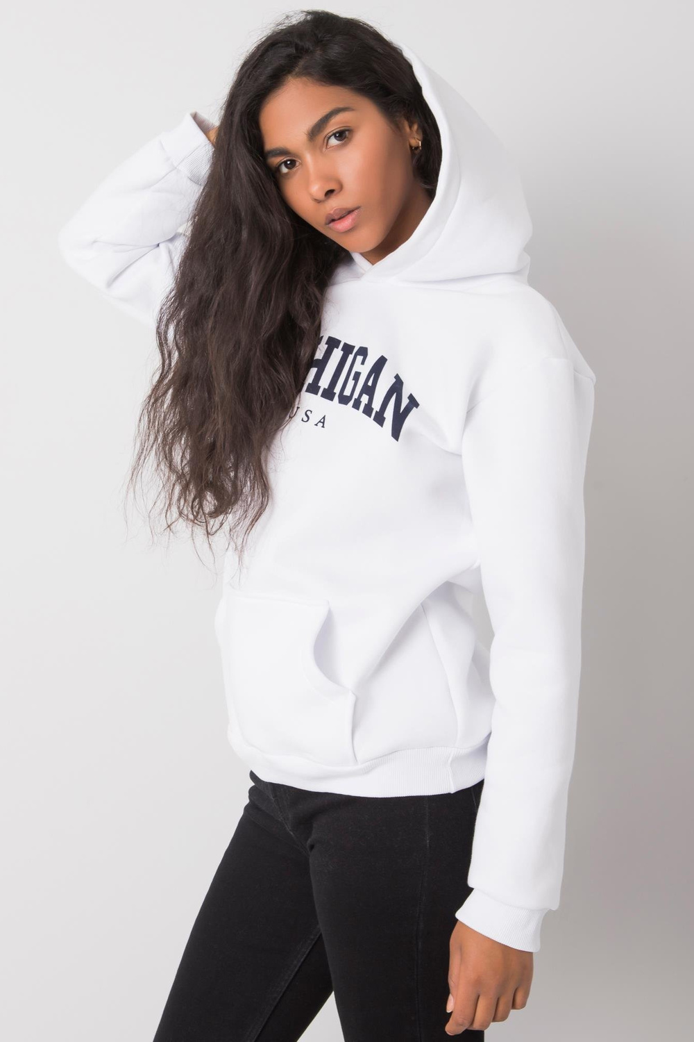 Modelis dėvi S dydį /M. Modelio matmenys: aukštis 174 cm, krūtinė 84 cm, juosmuo 60 cm, klubai 90 cm.