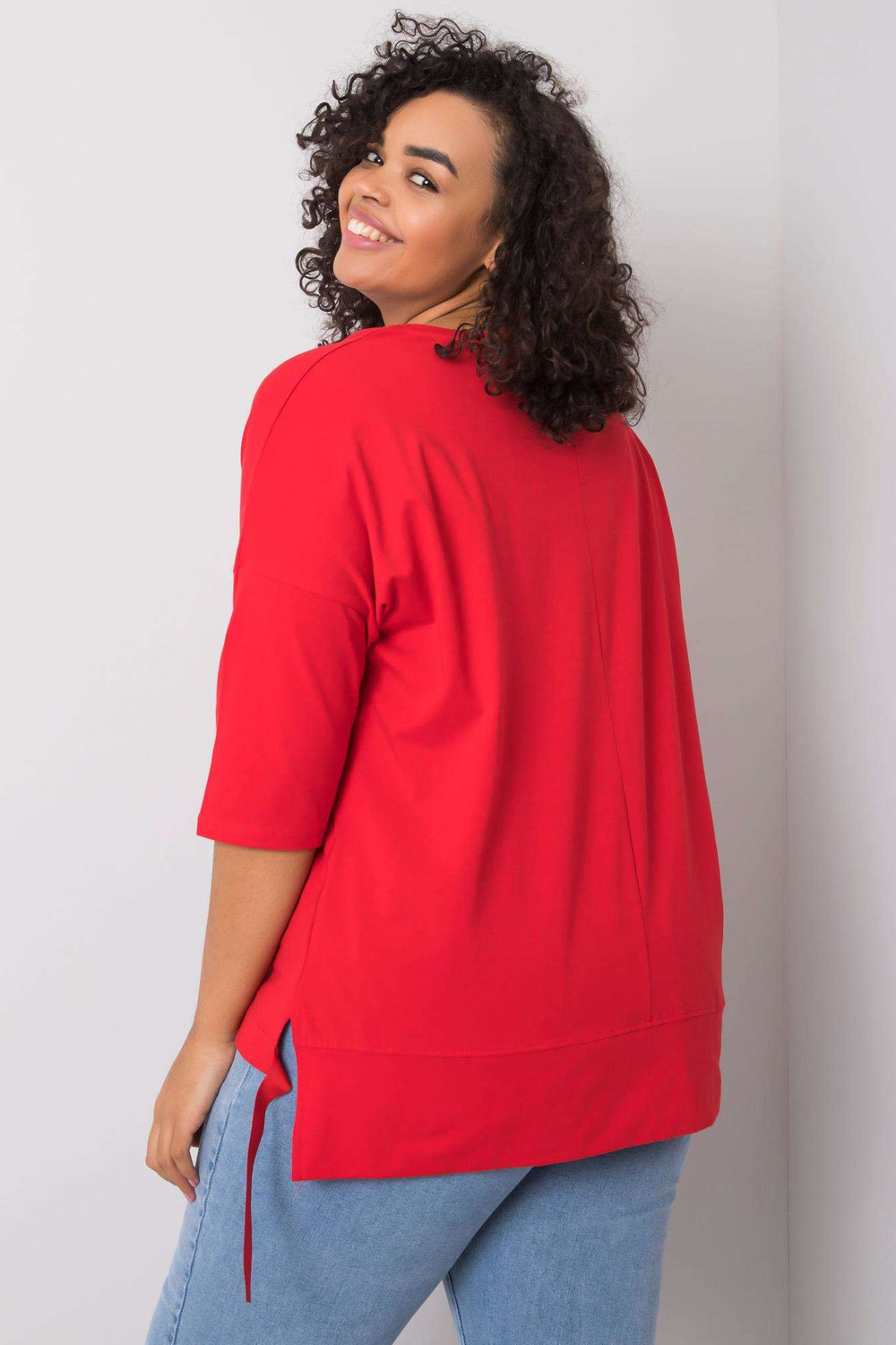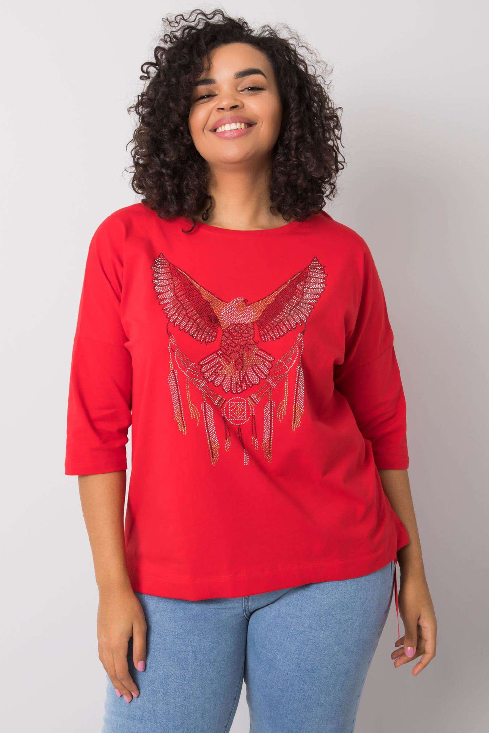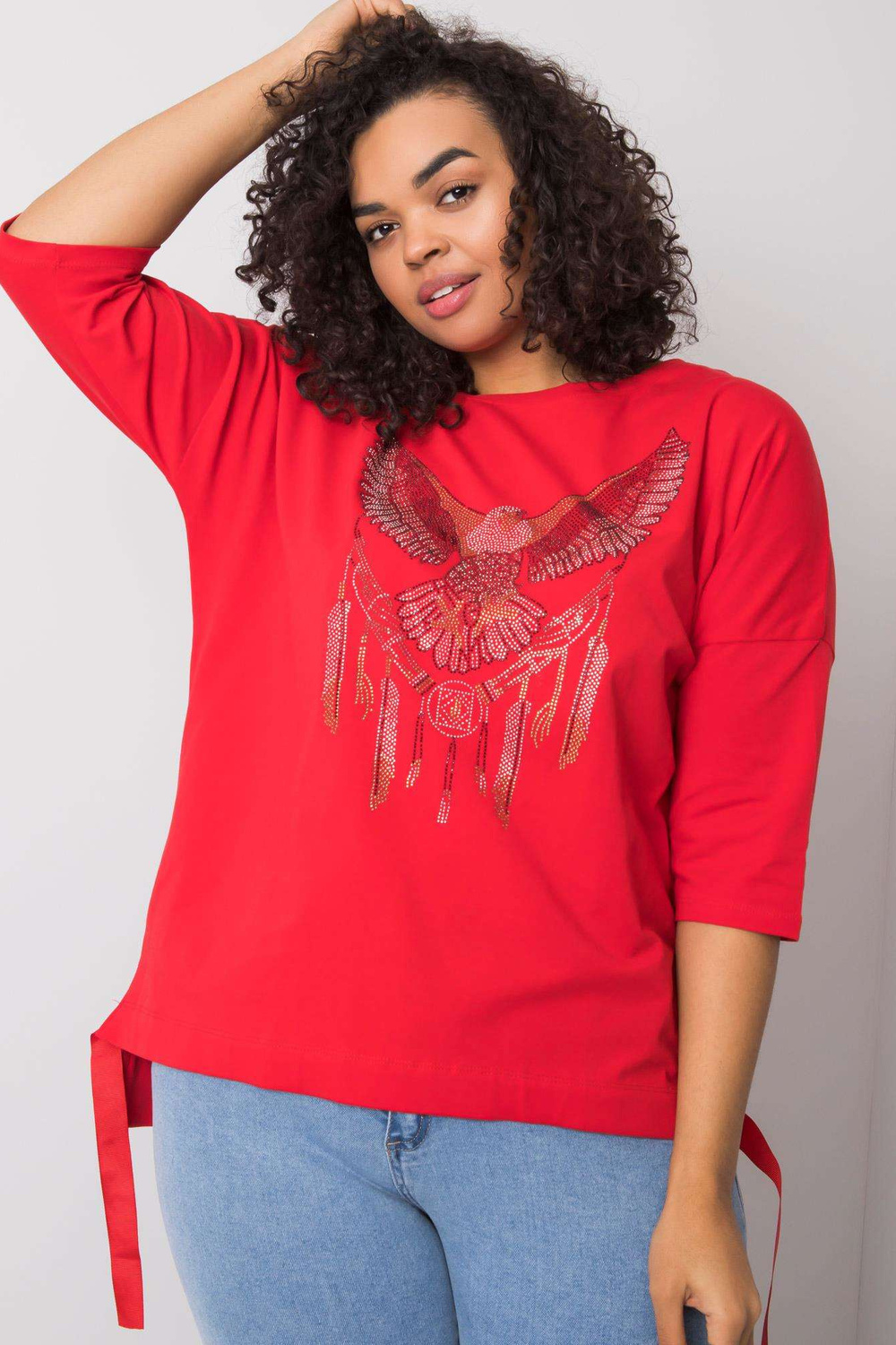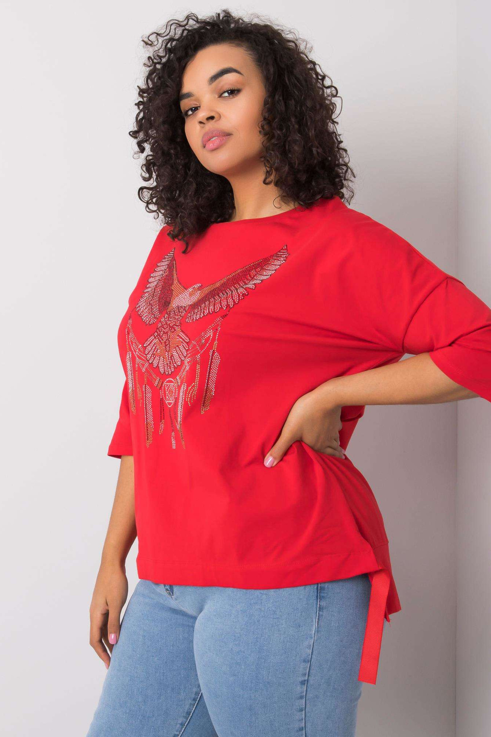 Raudona palaidinė su Cassia aplikacijomis.