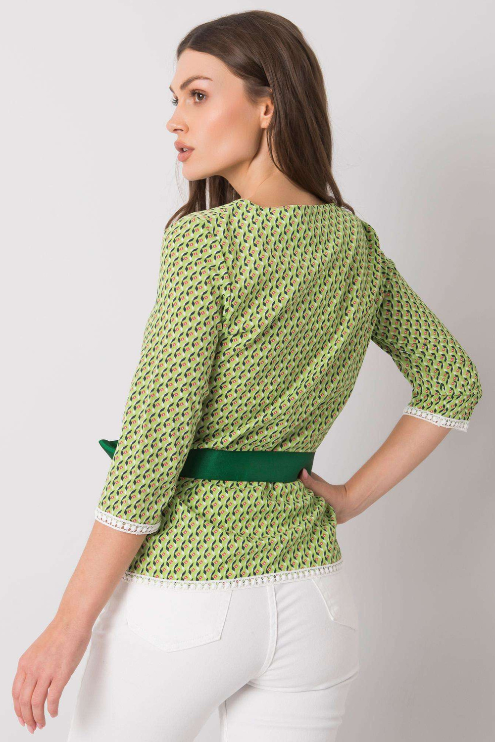 Žalia palaidinė su Ifrah raštais. priedai: dirželio medžiagasudėtis: 35% medvilnė 25% poliesteris, 20% viskozė, 20% elastanas skalbimo būdas: skalbimas mašinoje 30°C Modelis dėvi S dydį. Modelio išmatavimai: aukštis 170 cm, krūtinė 93 cm, juosmuo 66 cm, klubai