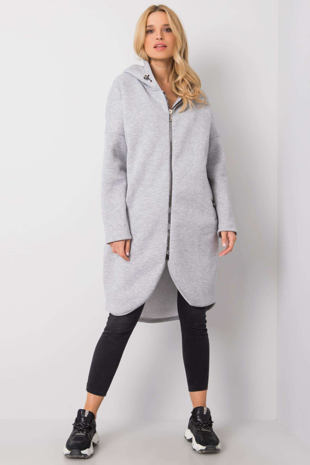 Greymelange megztinis Tina RUE PARIS. aksesuarai: gobtuvas, užsegimas užtrauktuku, raišteliai, kišenės medžiagasudėtis: 90% medvilnė, 10% elastanas skalbimo būdas: skalbimas mašinoje 30°C. Modelis dėvi S/M dydį. Modelio matmenys: aukštis 175 cm, krūtinė 84 cm, juosmuo 65