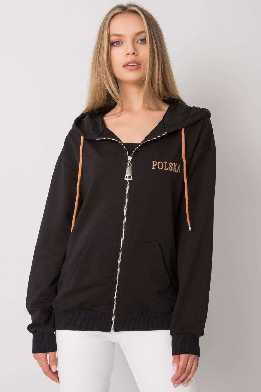 Modelis dėvi vieno dydžio dydį. Modelio matmenys: aukštis 174 cm, krūtinė 82 cm, juosmuo 62 cm, klubai 89 cm.