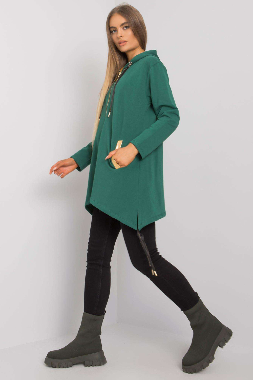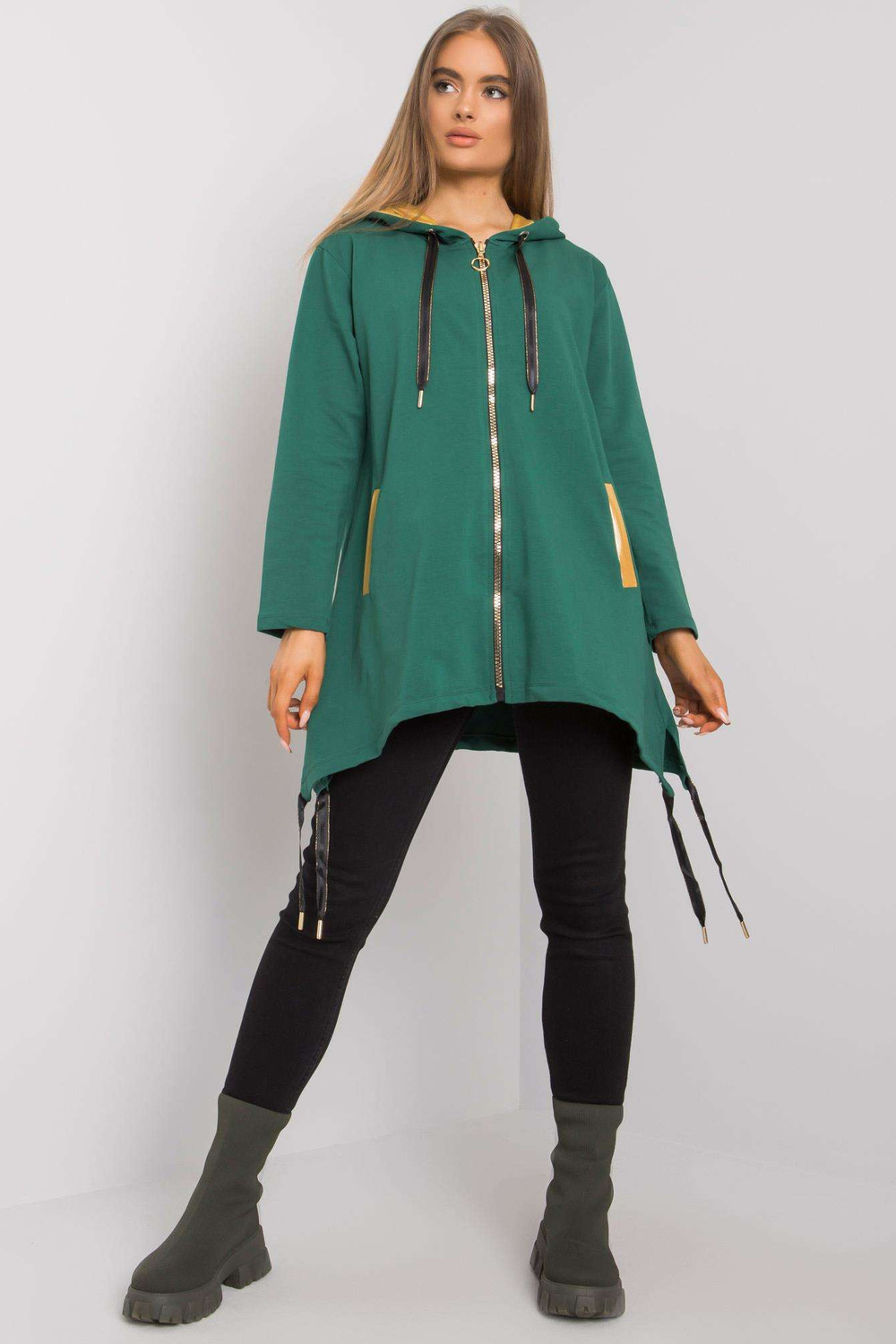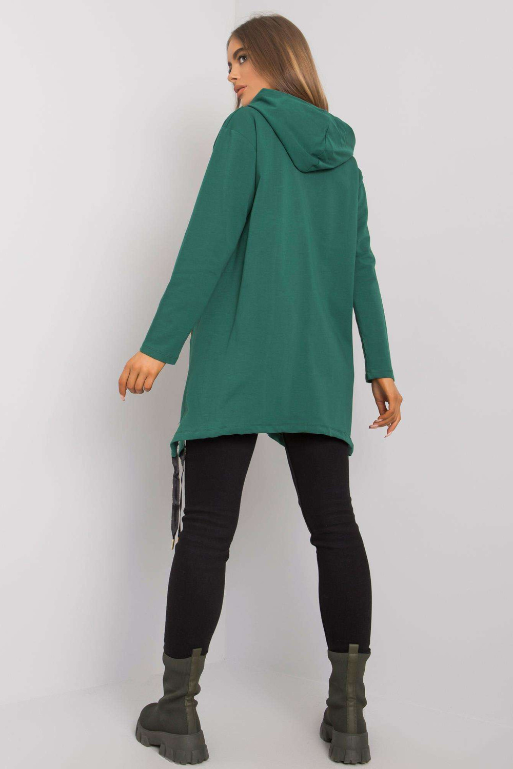 S/M dydžio megztinio matmenys matuojami plokščiai: plotis po pažastimis - 50 cm, bendras ilgis - 74 cm, rankovių ilgis - 60 cm