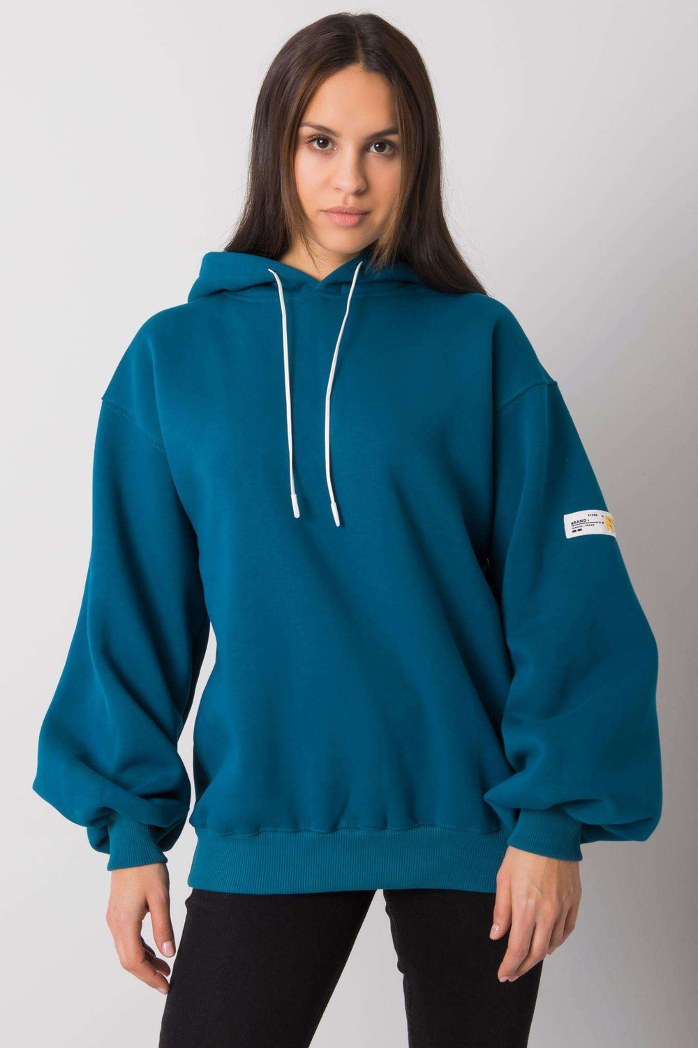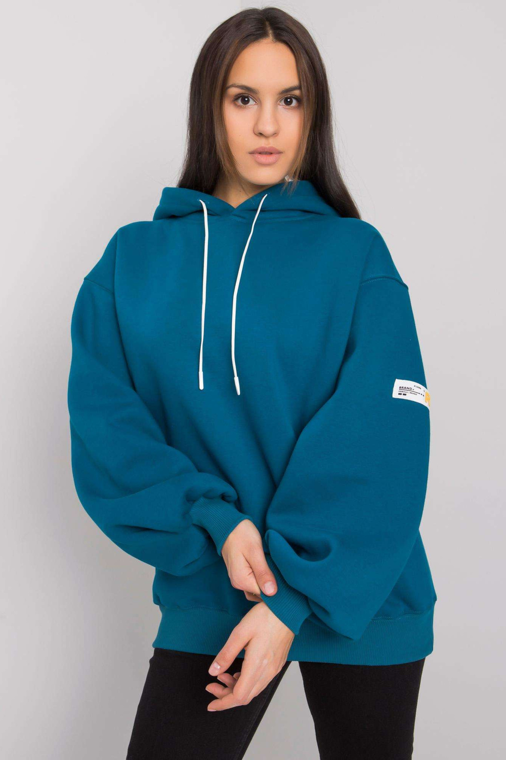 Palaidinės matmenys S/M dydžiu matuojant plokščią: plotis po pažastimis - 61 cm, bendras ilgis - 67 cm, rankovių ilgis - 62 cm