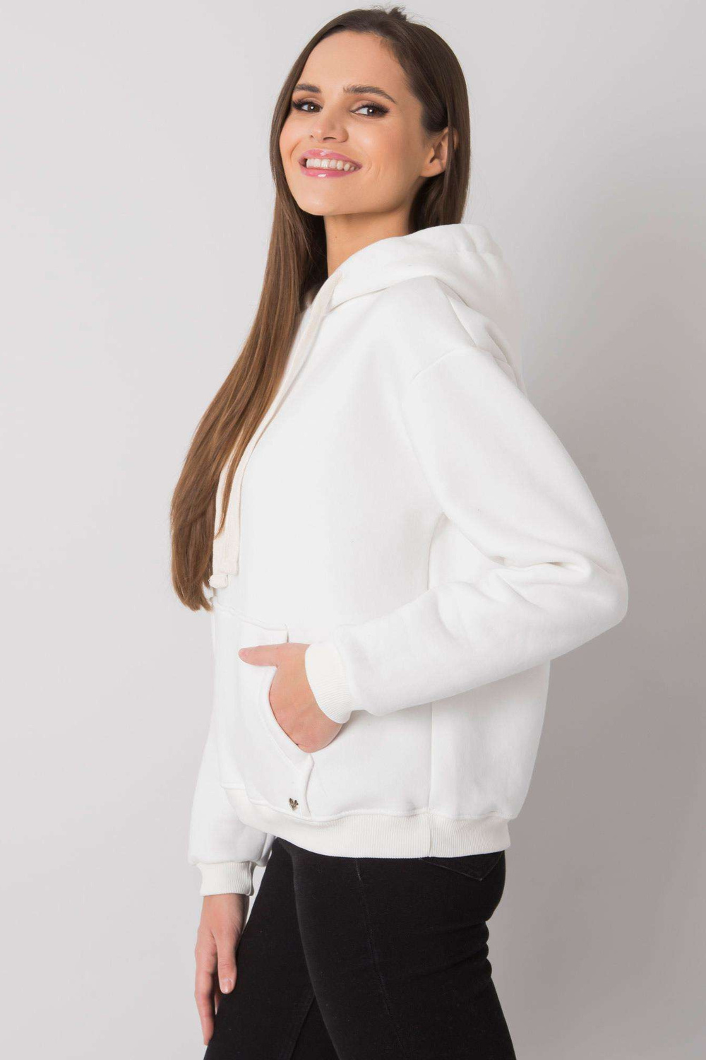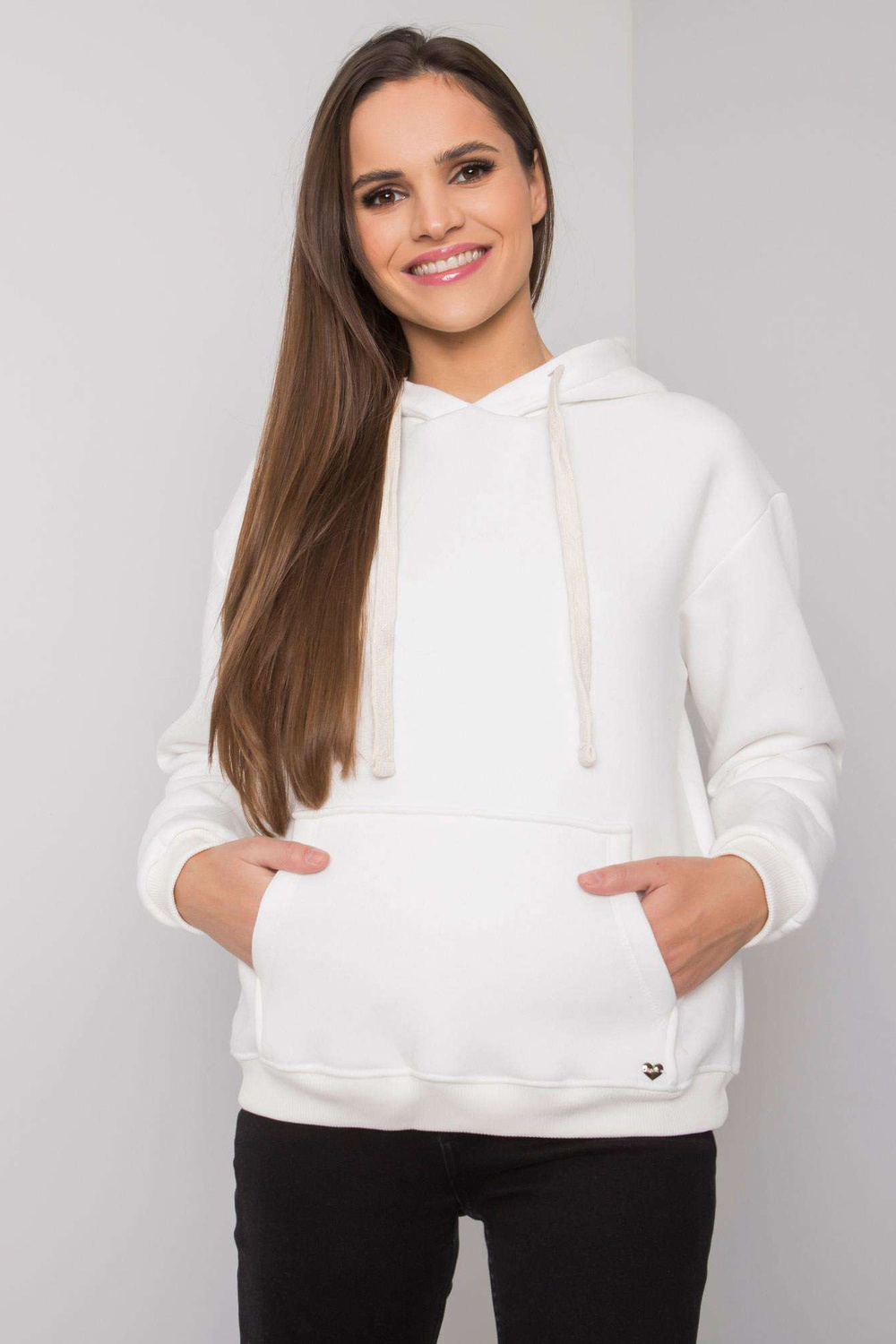 EcruGeorgie moteriškas megztinis su kengūra.