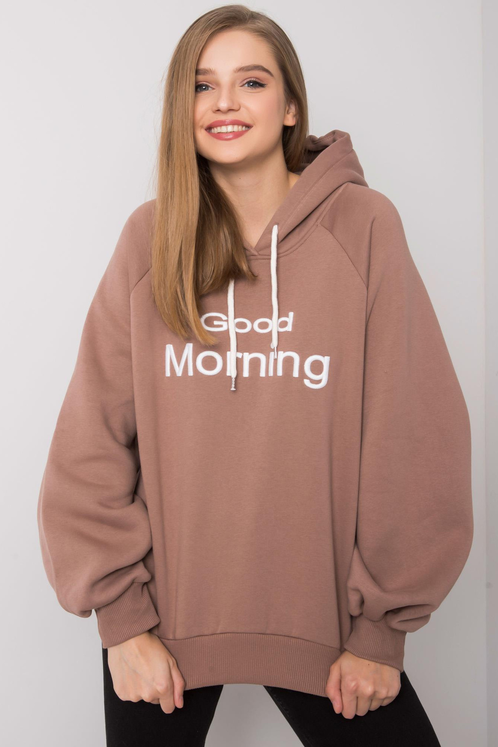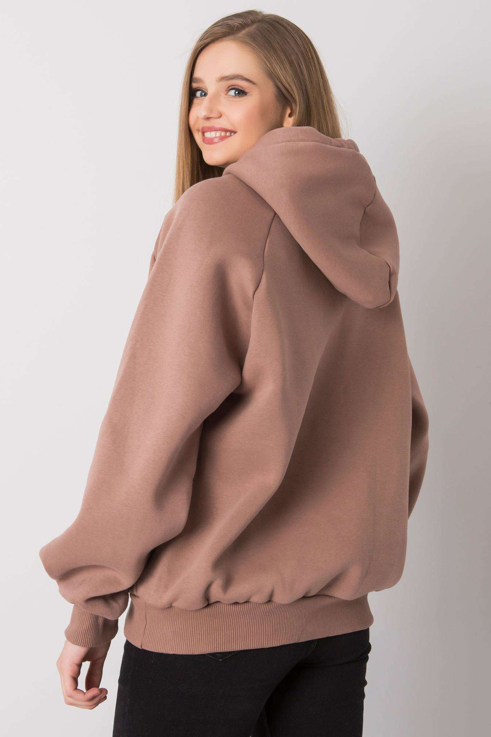 Šviesiai rudi dideli megztiniai su Alisos gobtuvu.