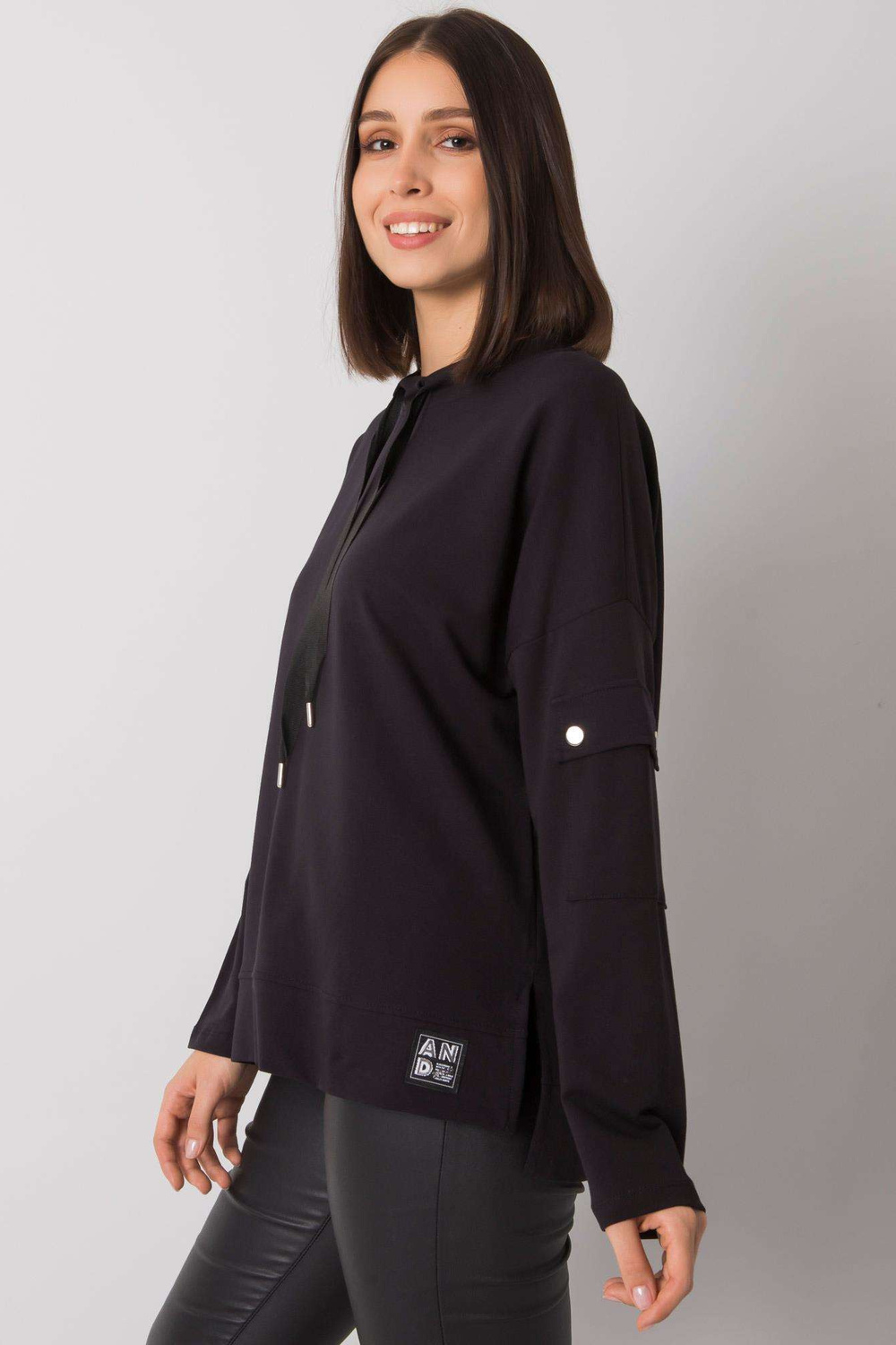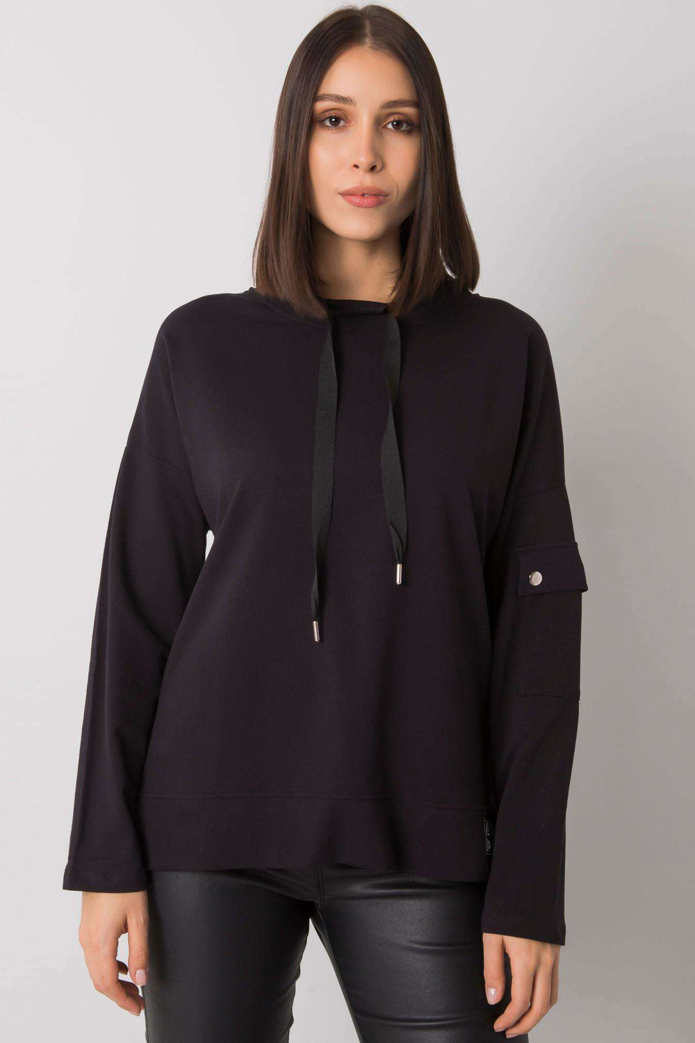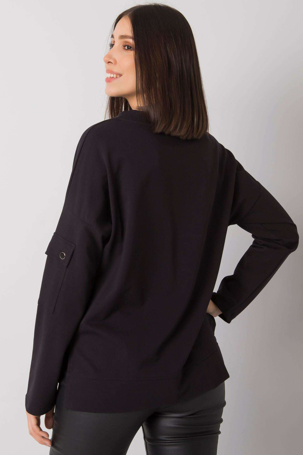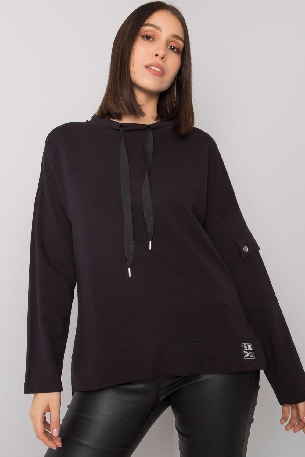 Juoda plius dydžio palaidinė su kišenėle ant Lunar rankovės.