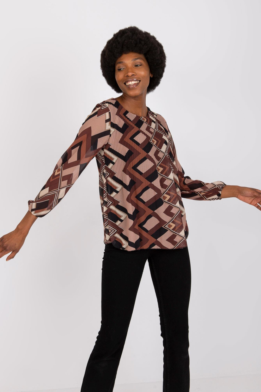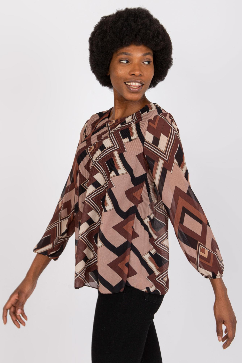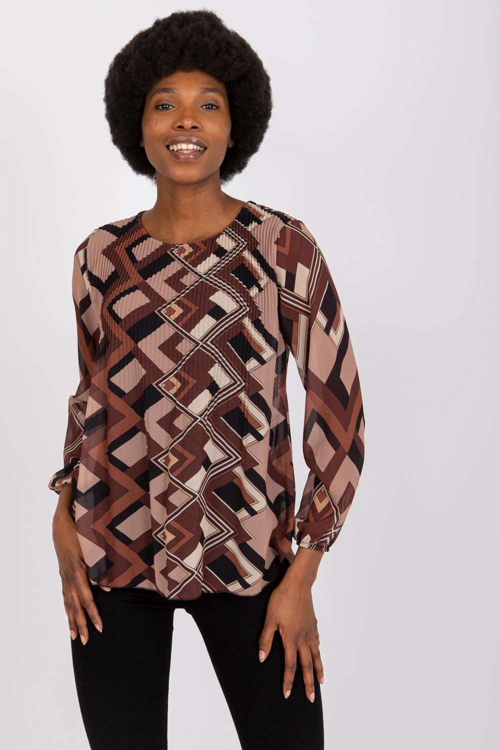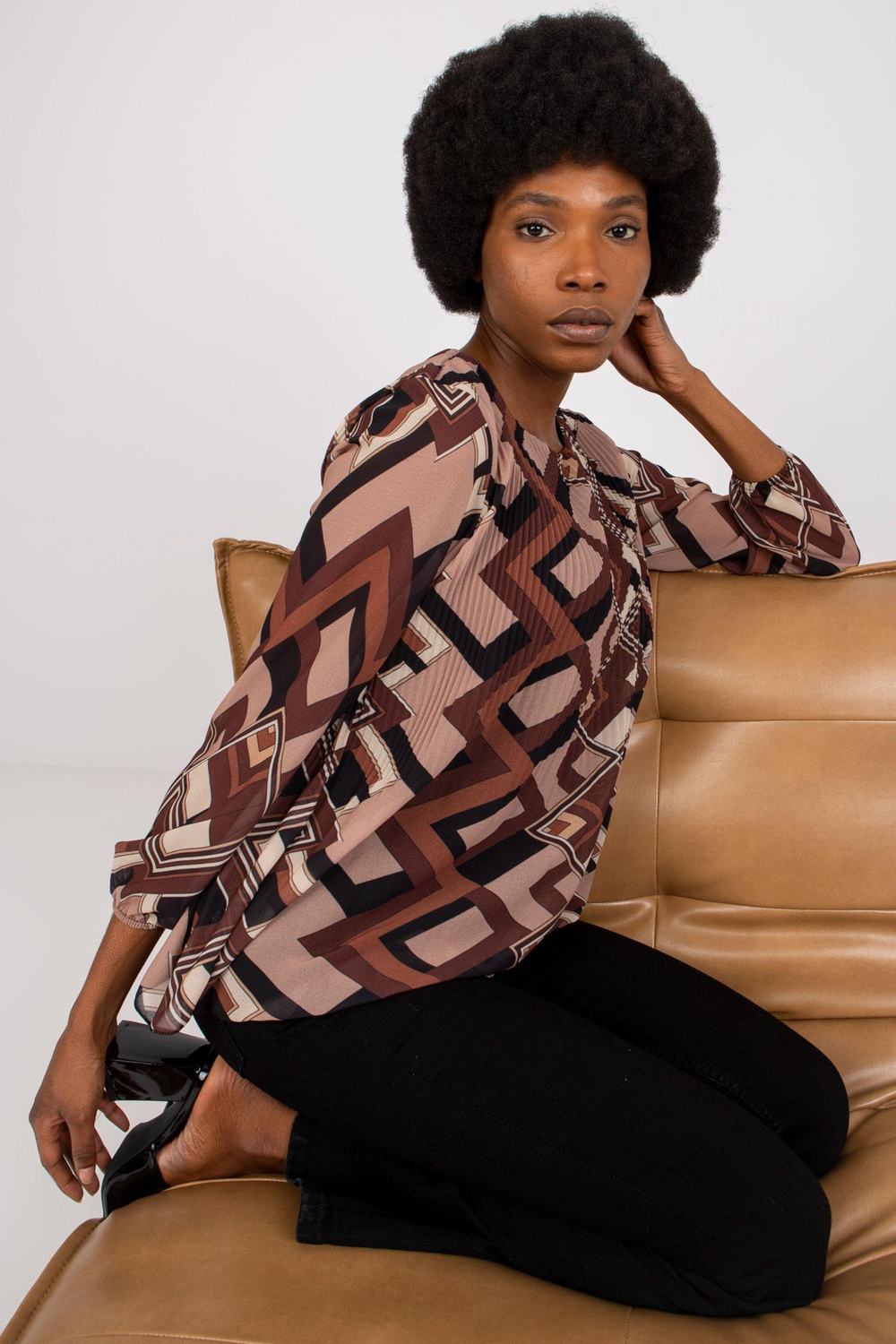 Ruda ir smėlio spalvos palaidinė su Virdžinijos raštu .