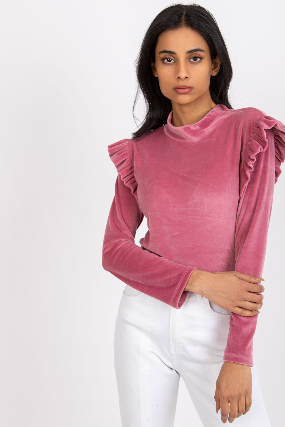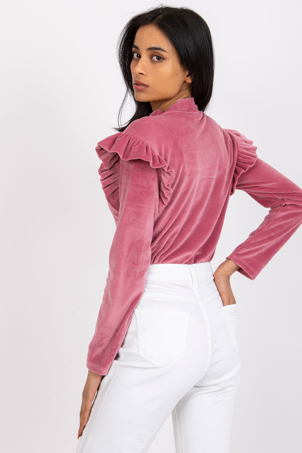 Rožinė veliūrinė palaidinė su raukiniais Eugenie