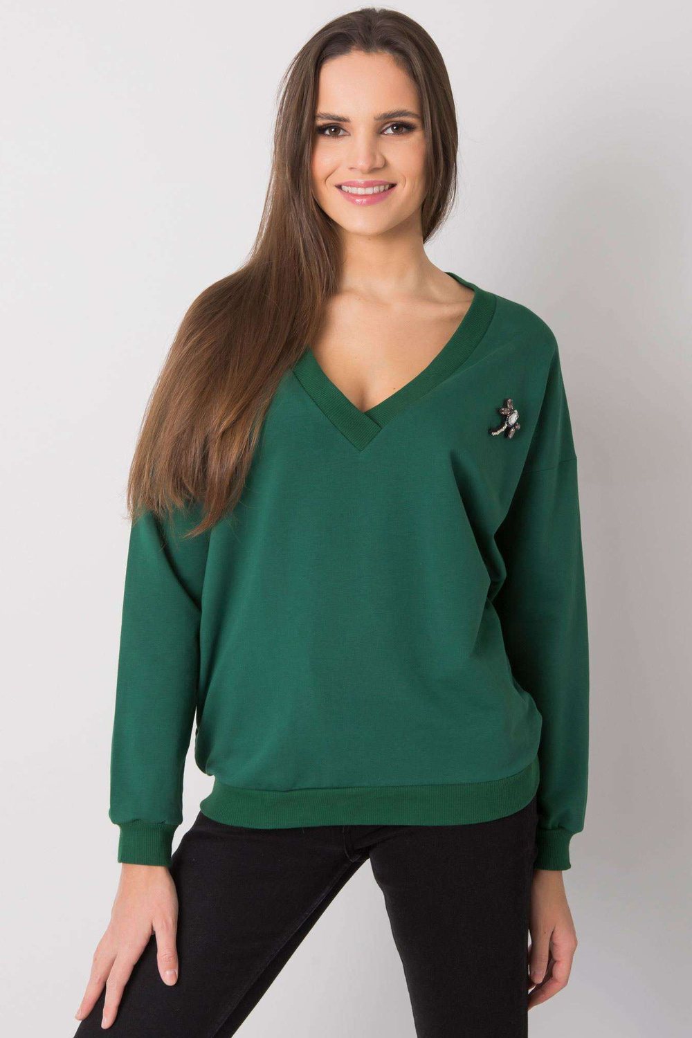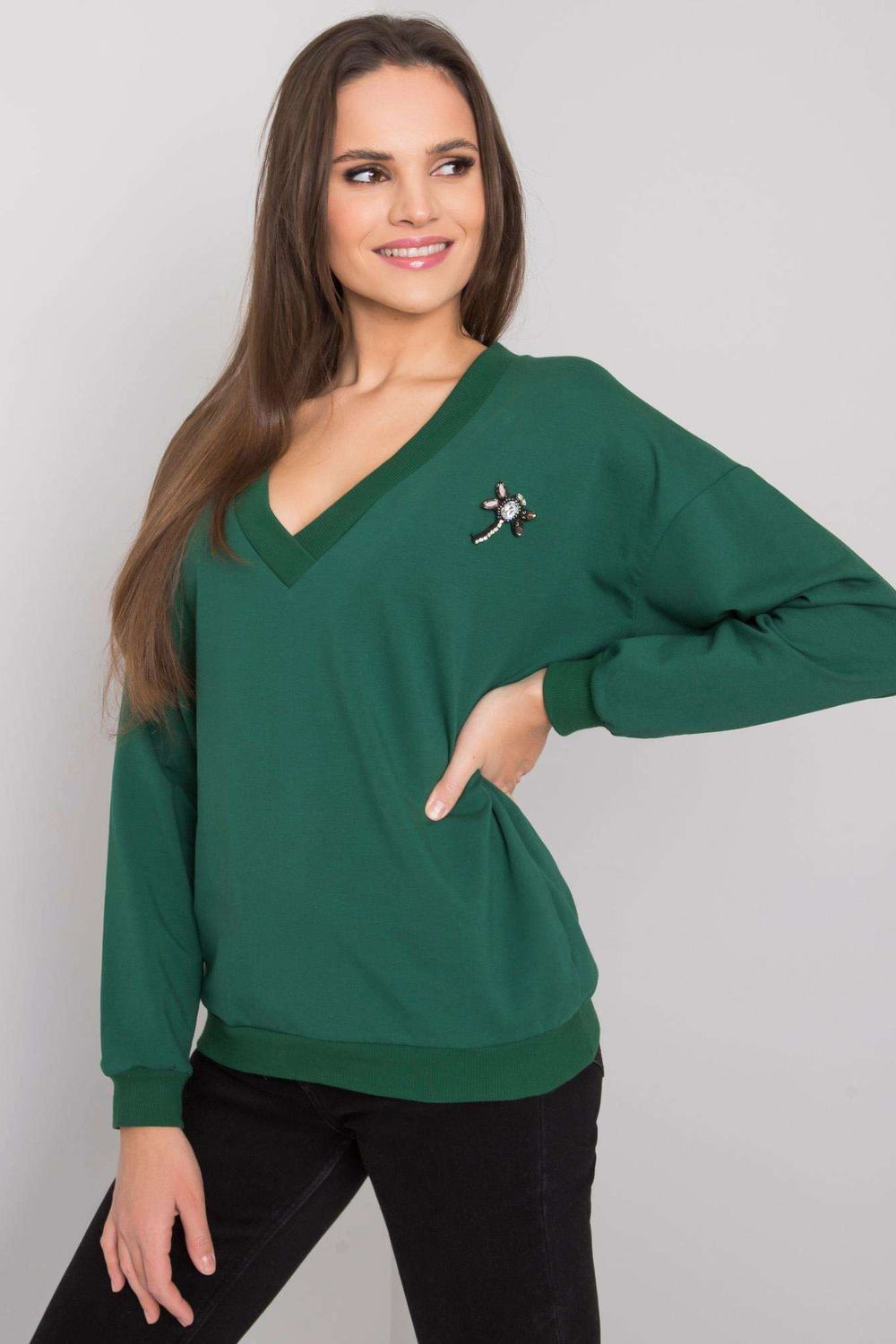 Tamsiai žalias megztinis su aplikacijomis Marseille RUE PARIS. medžiagos sudėtis: 90% medvilnė, 10% elastanas skalbimo būdas: skalbimas mašina 30°C Gaminio kodas: RV-BL-7370.78P dominuojantis raštas: be rašto Stilius: laisvalaikio galimybė: kasdienis, miestui, darbui Th