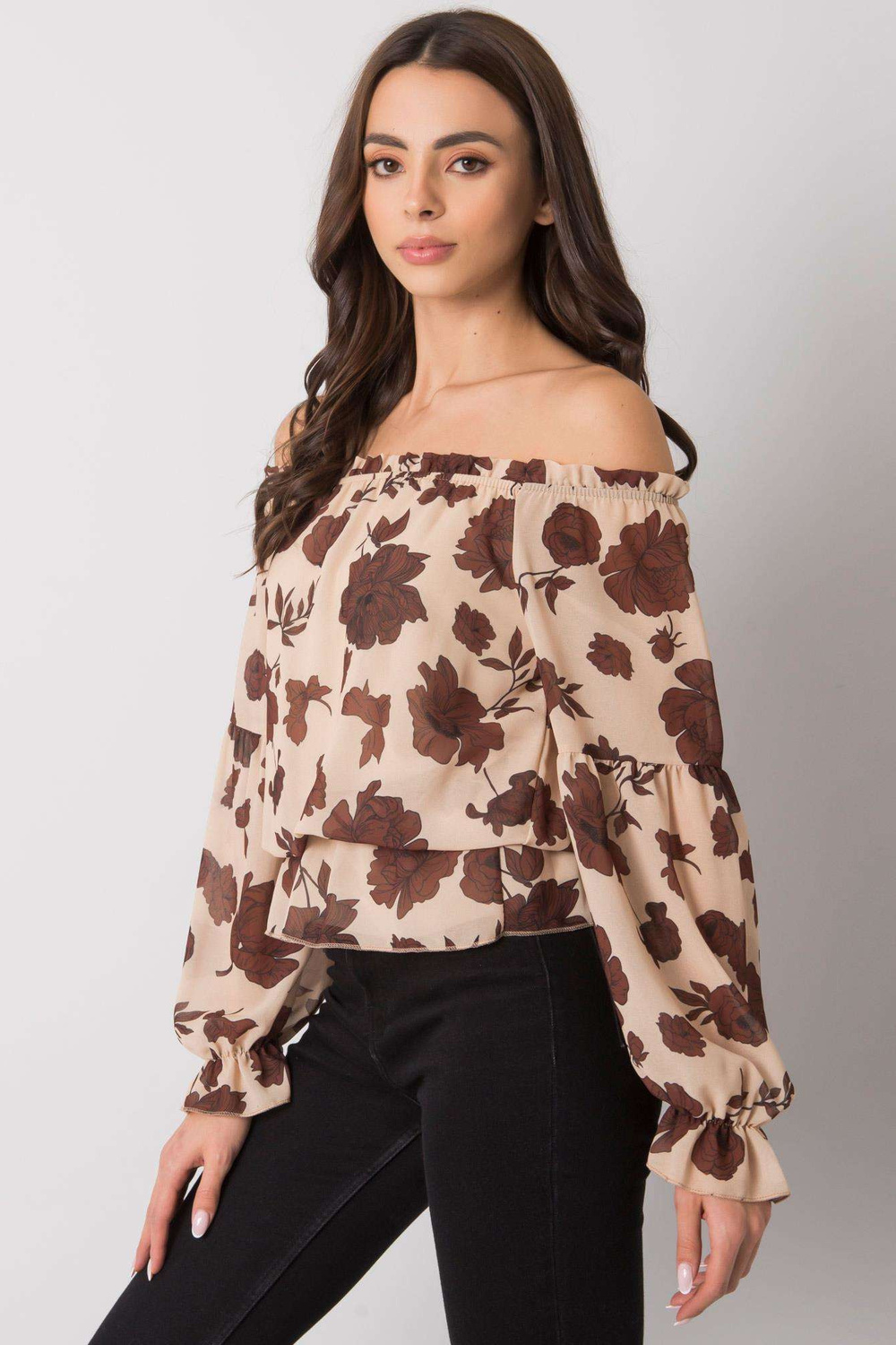 Smėlio ir rudos spalvos ispaniška palaidinė su gėlėmis Orléans