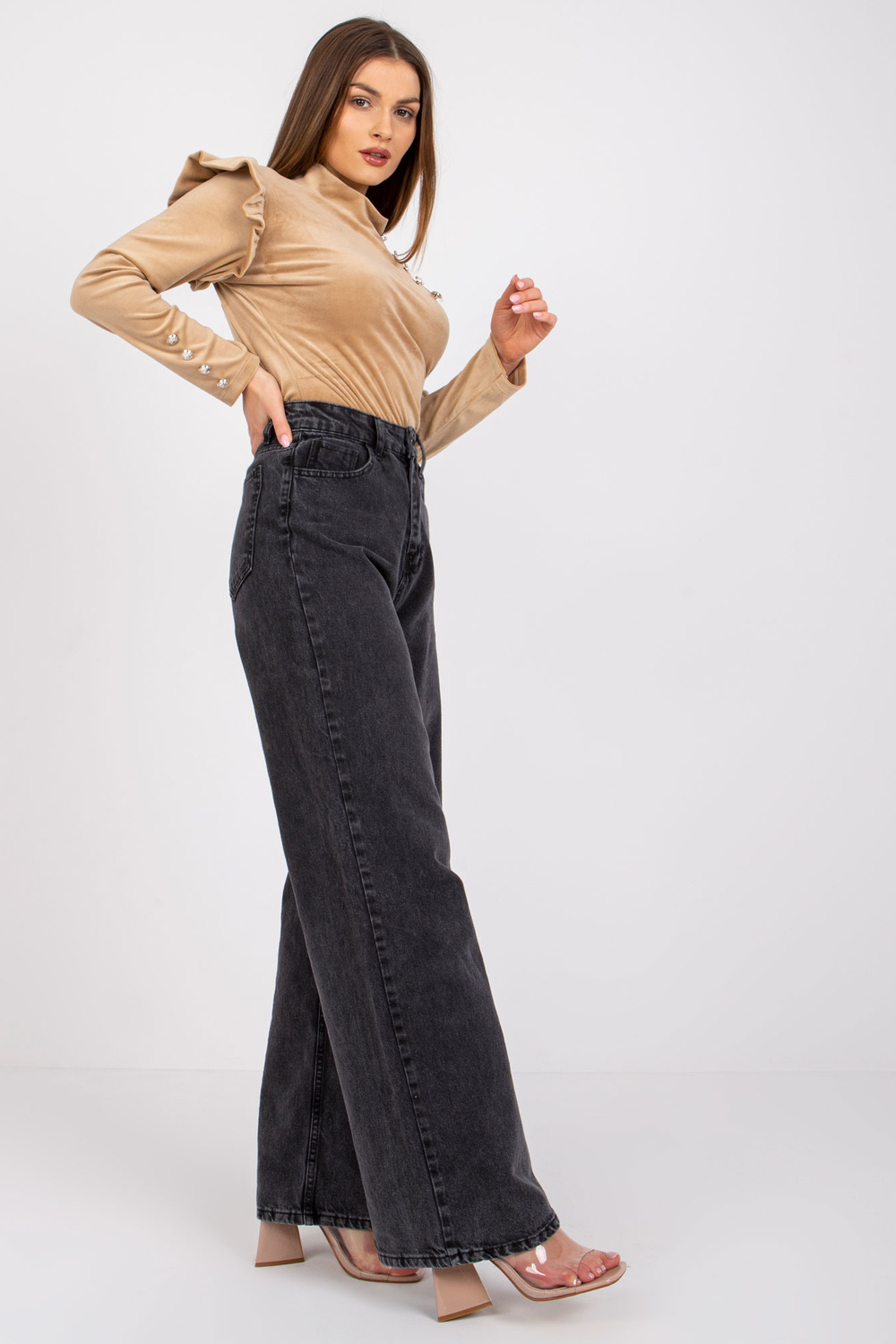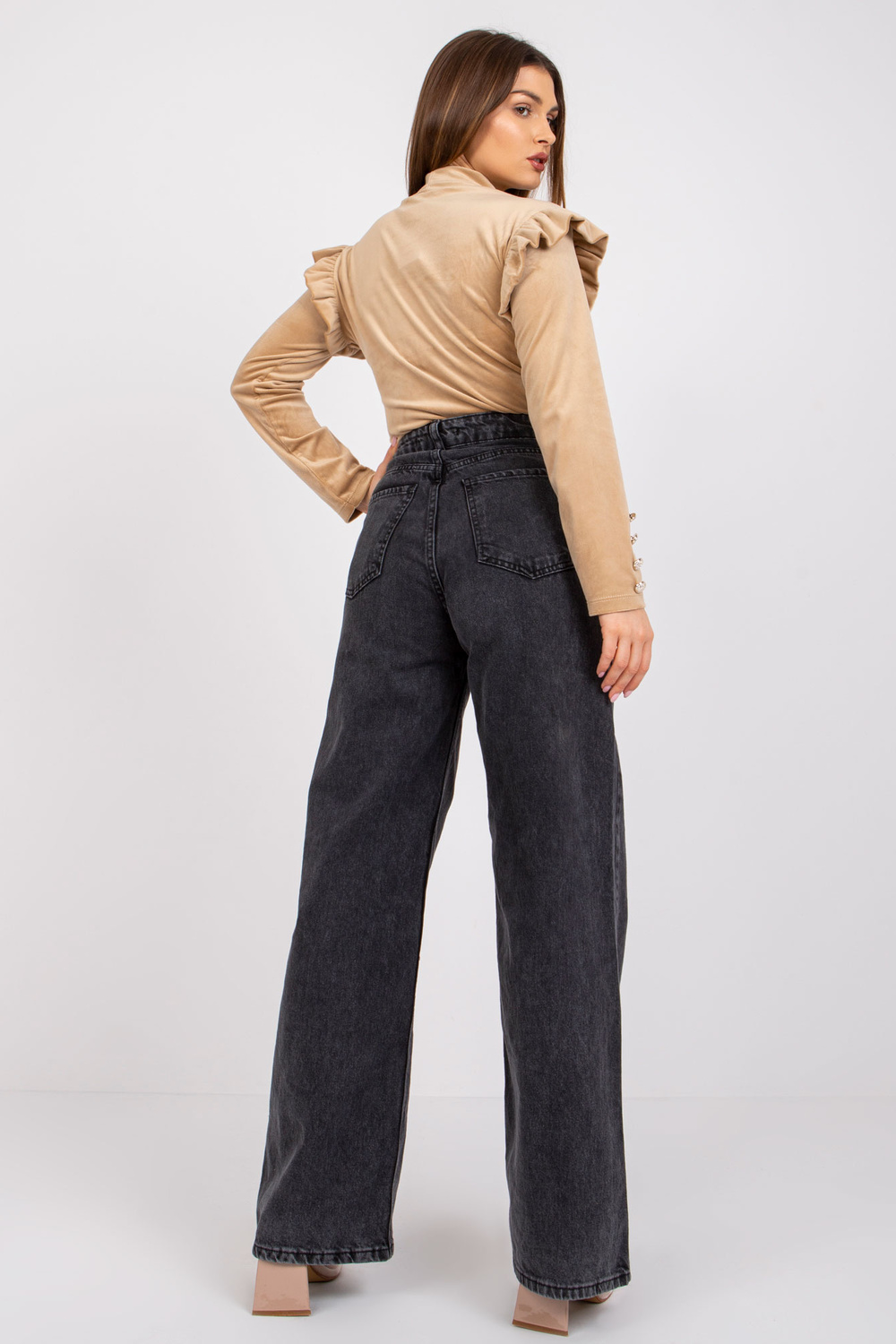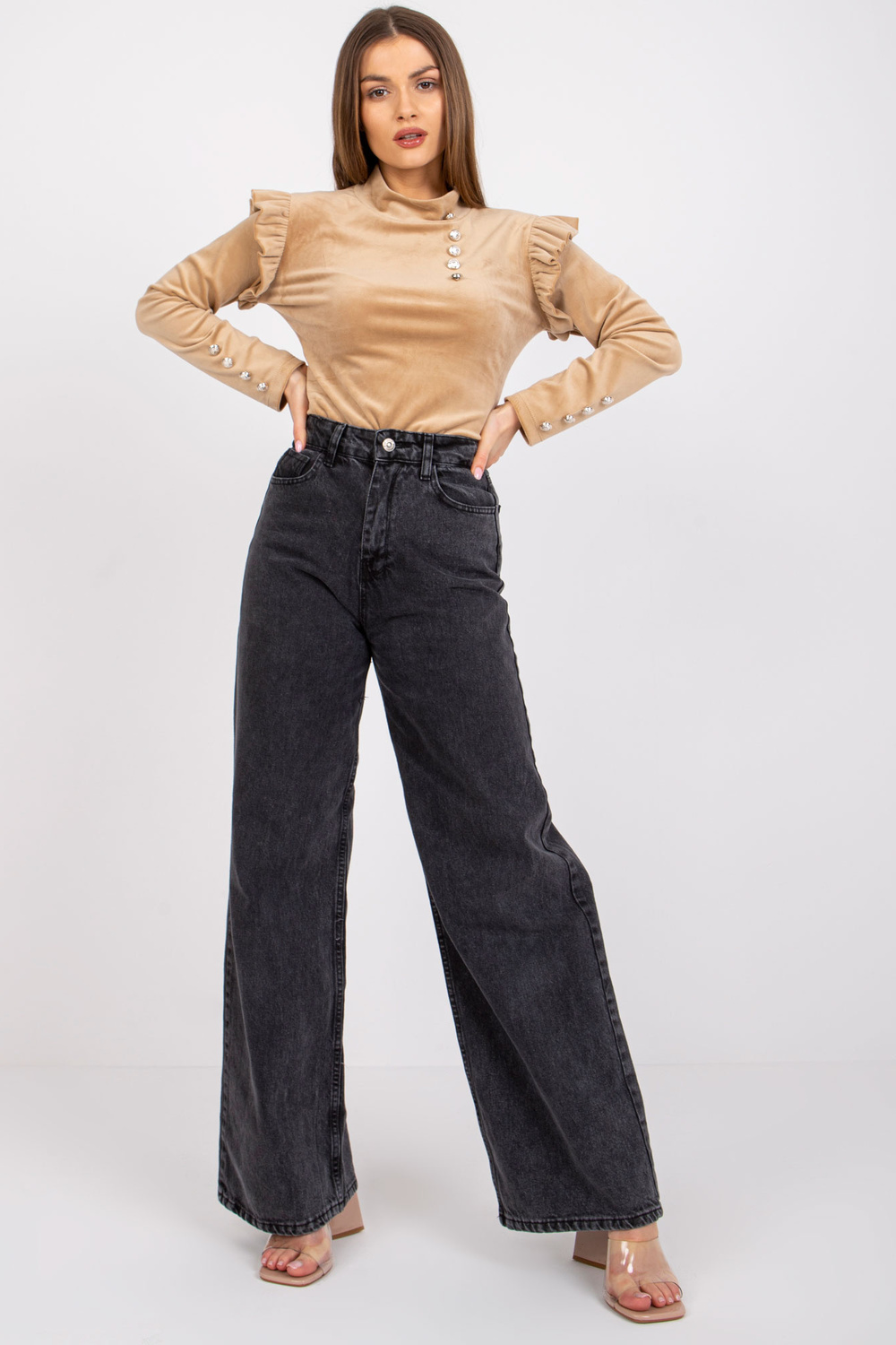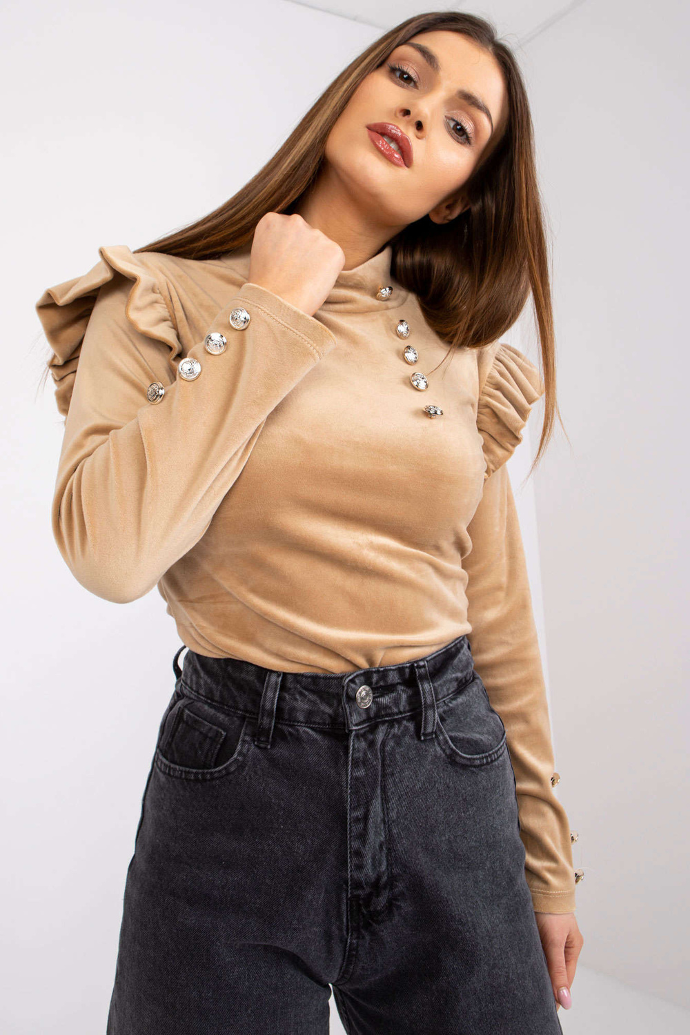 Tamsiai smėlio spalvos veliūrinė palaidinė ilgomis rankovėmis Capri.