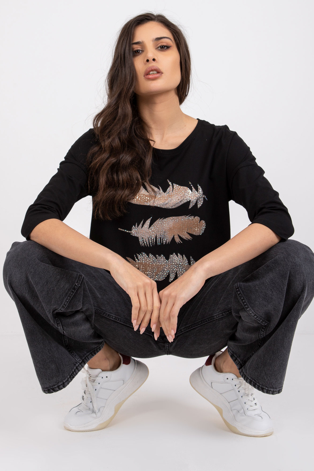 Modelis dėvi S/M dydį. Modelio matmenys: aukštis 176 cm, krūtinė 86 cm, juosmuo 60 cm, klubai 88 cm.