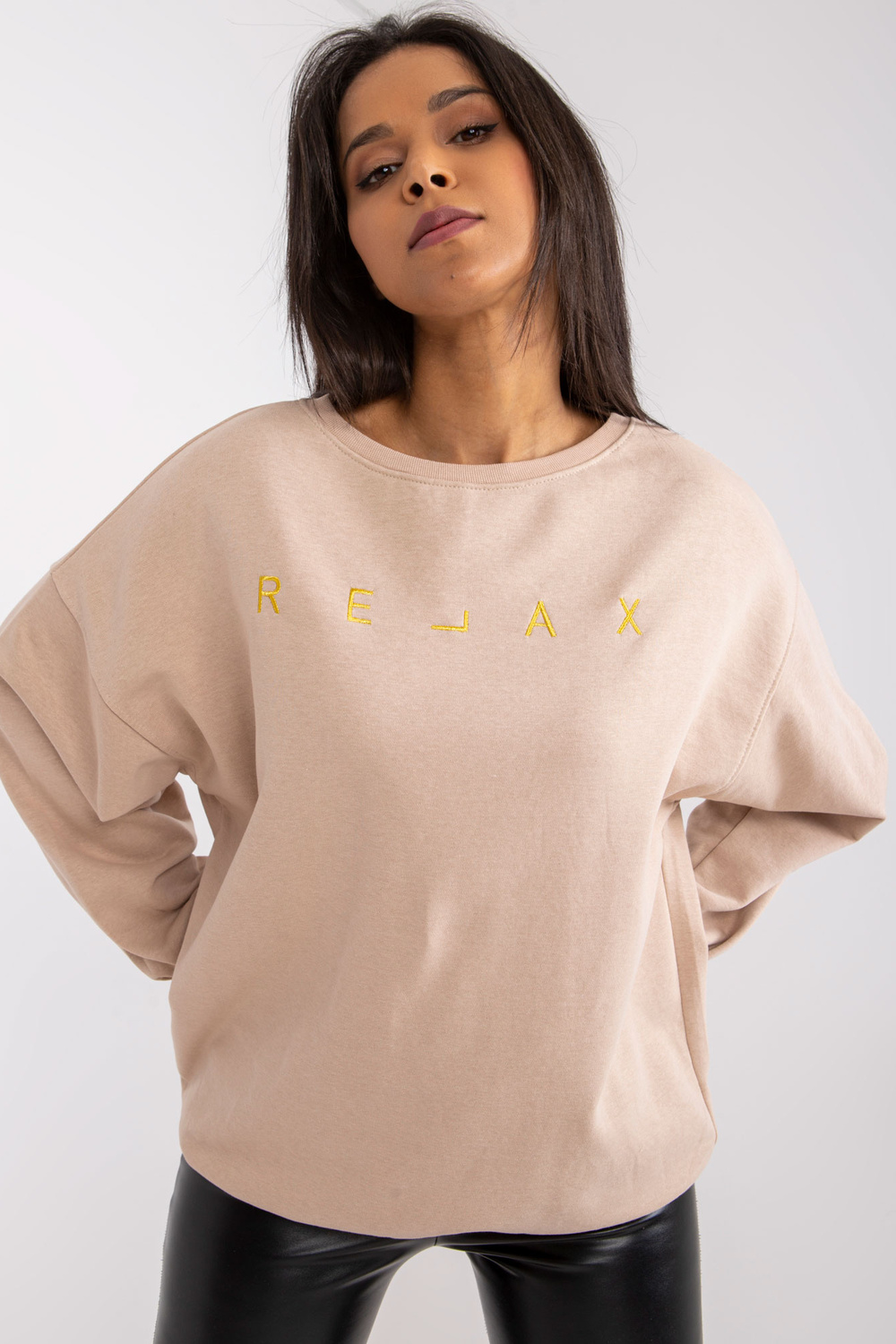 Smėlio spalvos moteriškas megztinis su užrašu Damiette .
