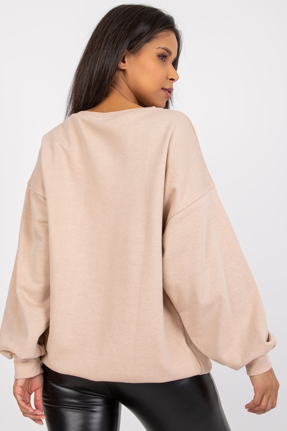 Modelis dėvi vieno dydžio dydį. Modelio matmenys: aukštis 170 cm, krūtinė 79 cm, juosmuo 60 cm, klubai 89 cm.