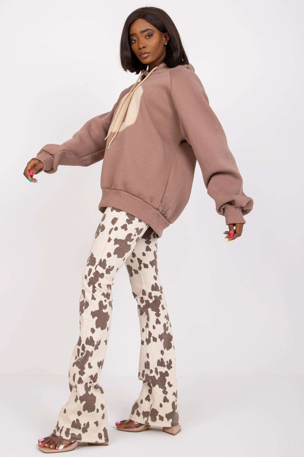 Vieno dydžio megztinio matmenys matuojami plokščiai: plotis po pažastimis - 62 cm, bendras ilgis - 68 cm, rankovių ilgis - 68 cm.