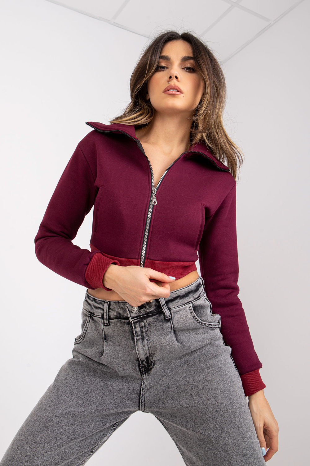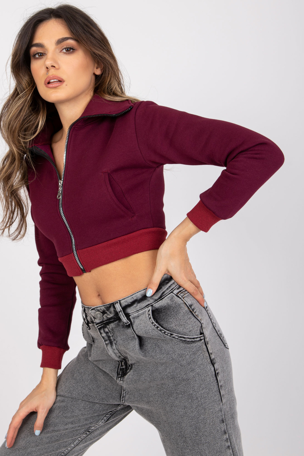 Burgundiškas trumpas megztinis Ann RUE PARIS. medžiagos sudėtis: 90% medvilnė, 10% elastanas skalbimo būdas: skalbimas mašina 30°C Gaminio kodas: RV-BL-7305.79 dominuojantis raštas: be rašto Stilius: kasdienis, miesto stiliaus progos: kasdienis, mieste, fo