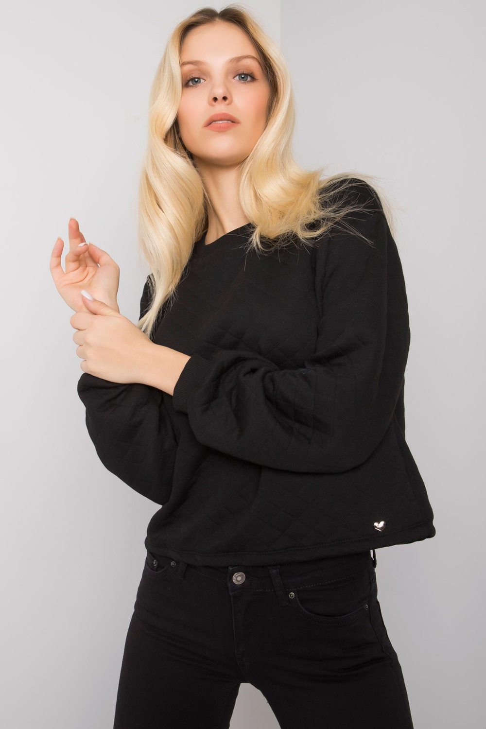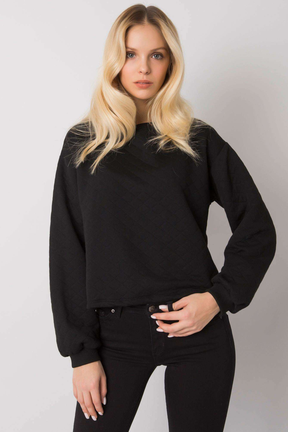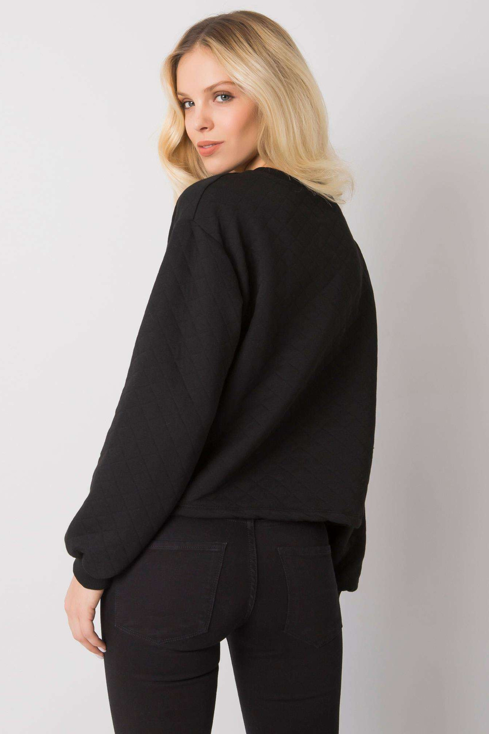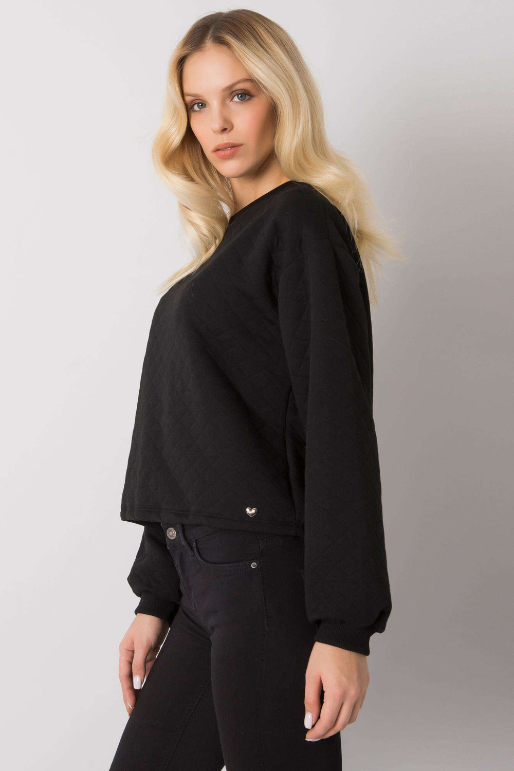 Juodas dygsniuotas megztinis be Kerstine gobtuvo.