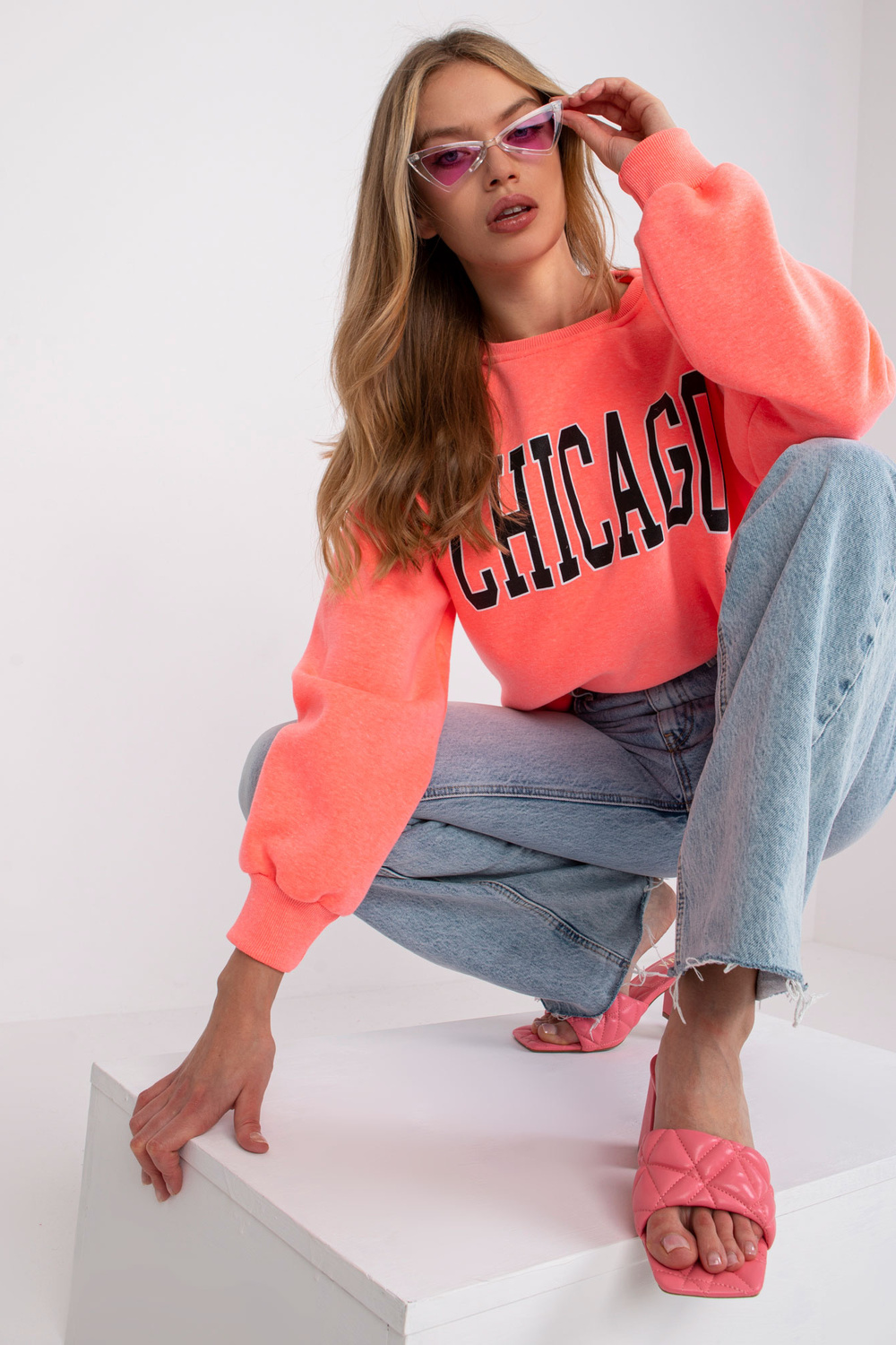 Rožiniai megztiniai su Madeiros užrašu.