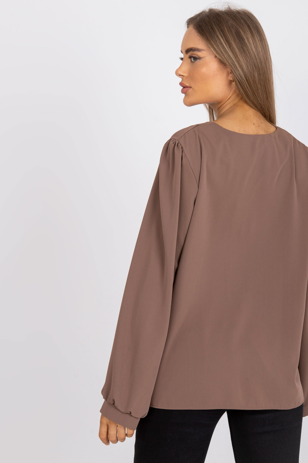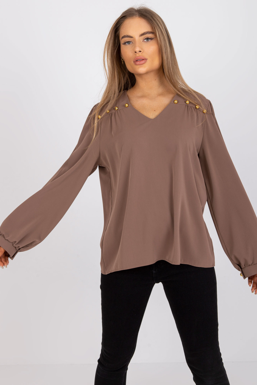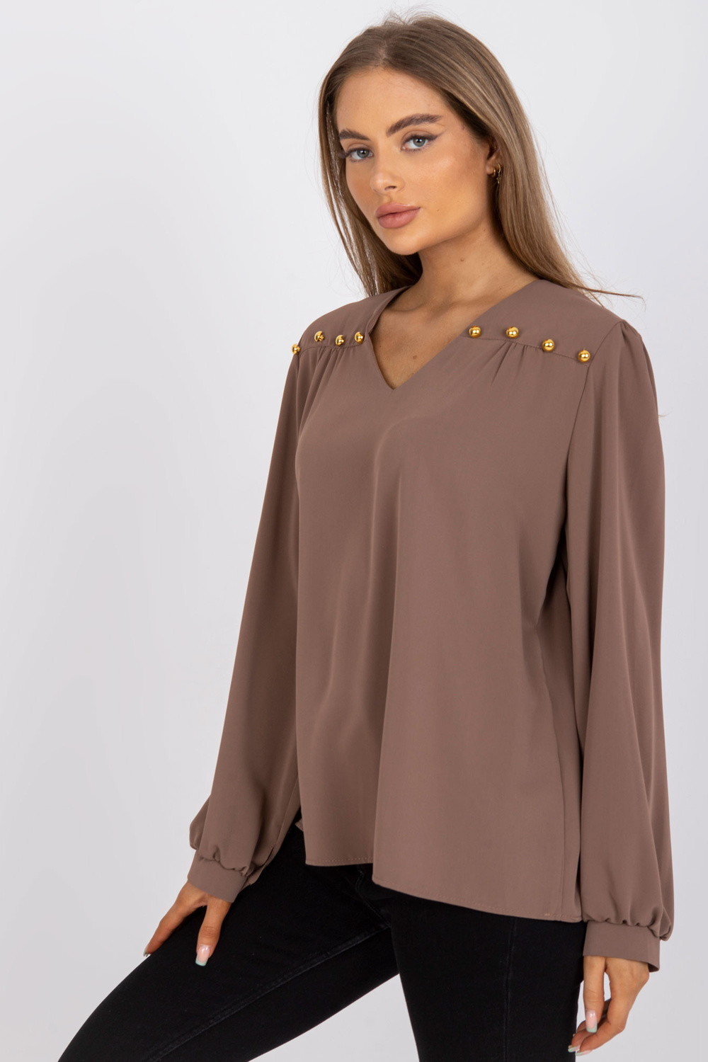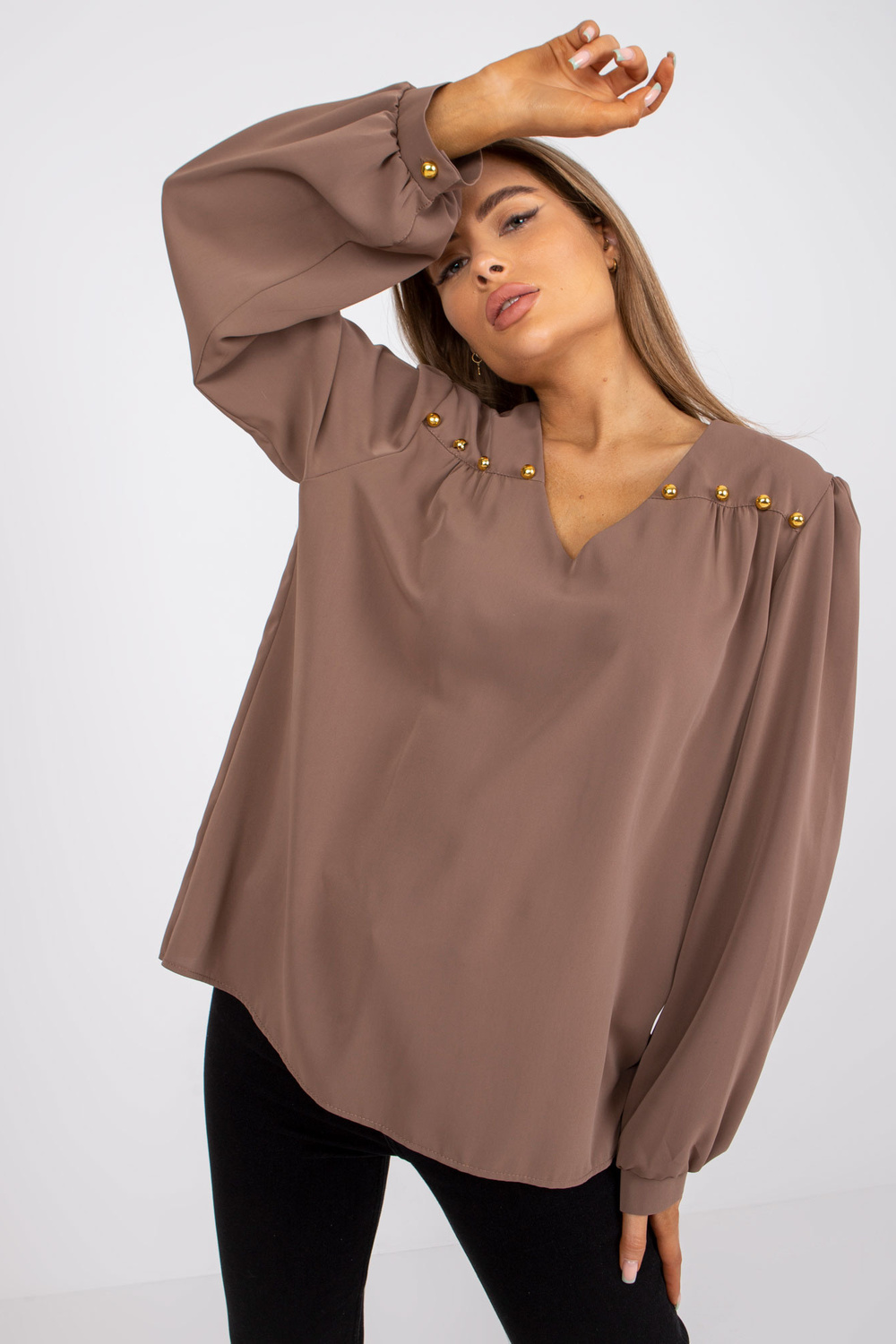 Tamsiai smėlio spalvos iškilminga palaidinė laisvomis rankovėmis .