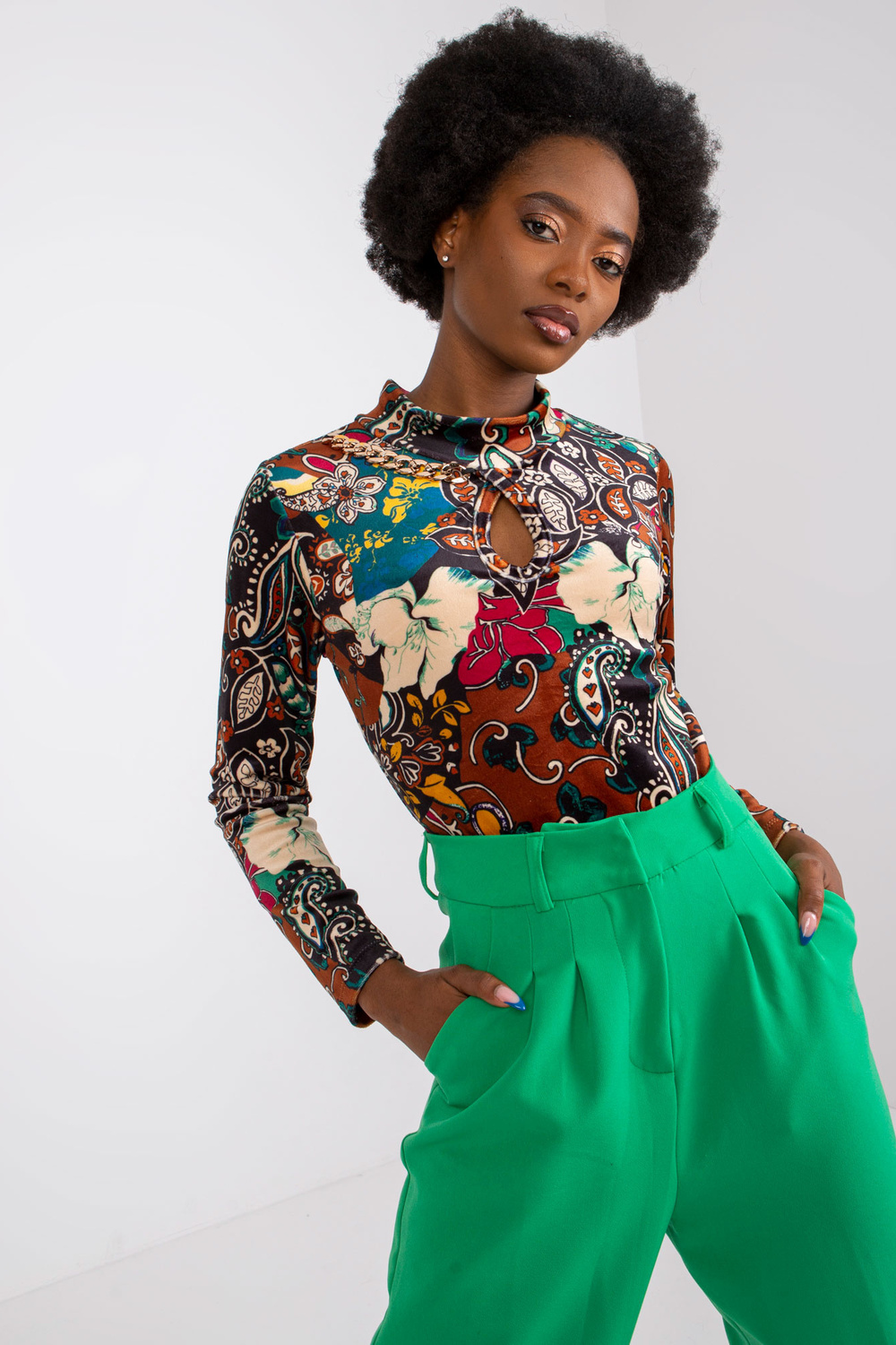 Rudų raštų palaidinė su veliūru Bologna. priedai: grandinės medžiagasudėtis: 95% poliesteris, 5% elastanas skalbimo būdas: skalbimas mašinoje 30°C Gaminio kodas: DHJ-BZ-6291-1.77P dominuojantis raštas: spauda (spausdinta) Stilius: kasdienis, miesto stilius Proga: kasdienis