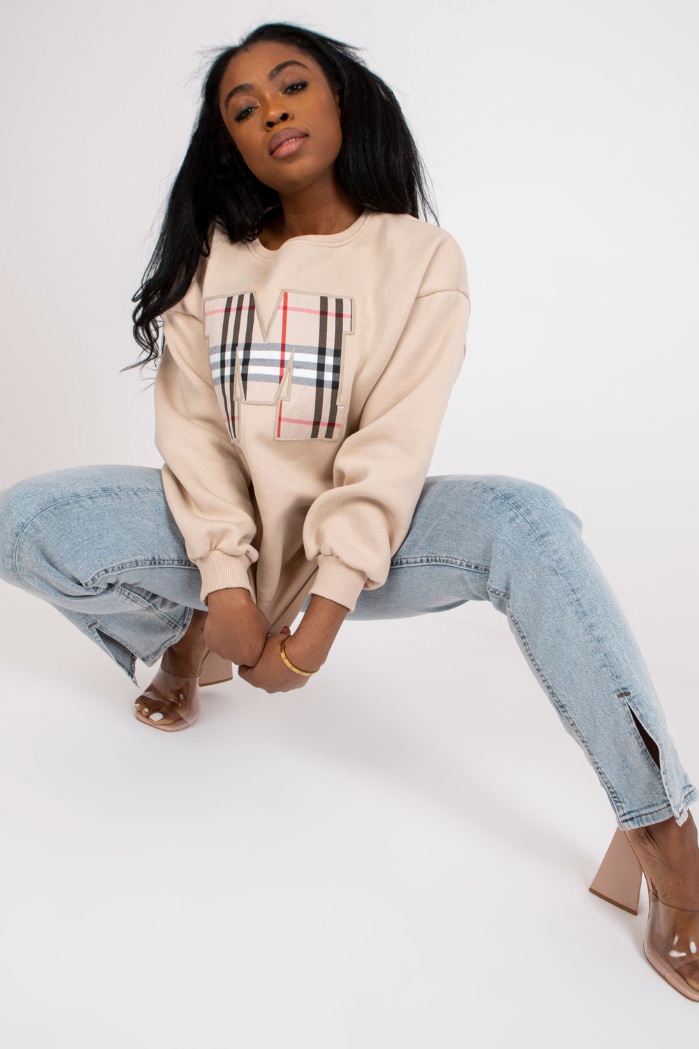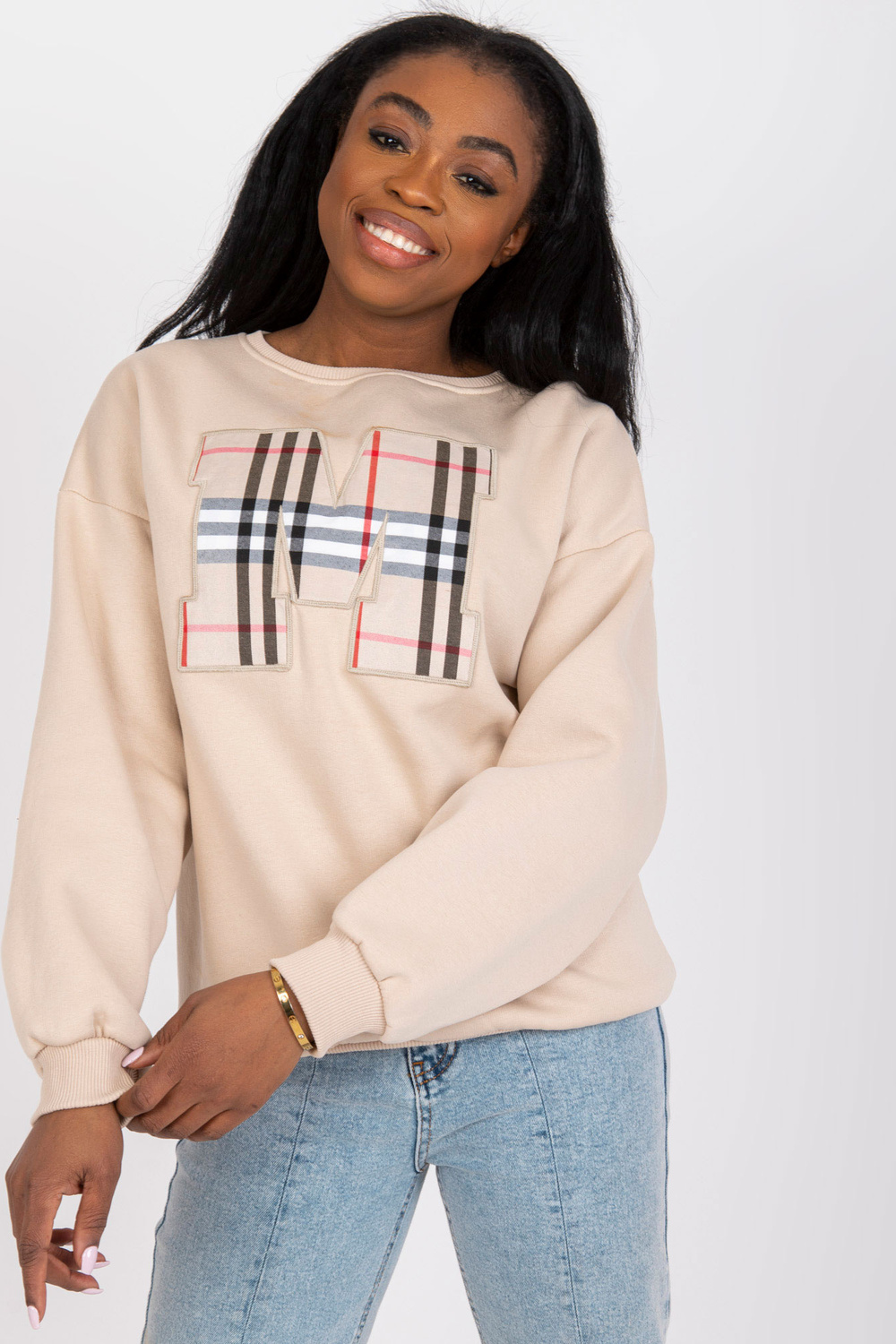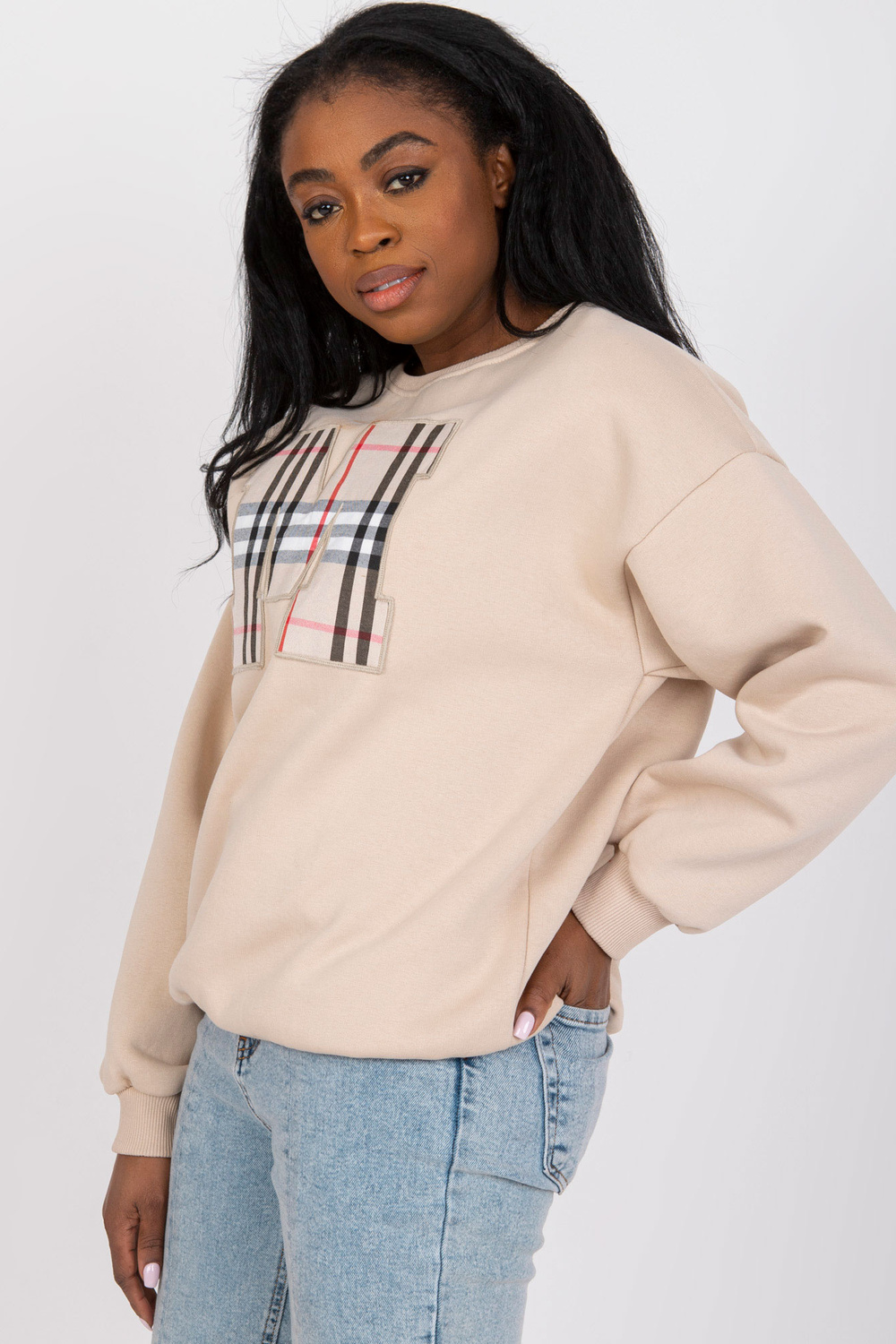 Smėlio spalvos megztinis be gobtuvo su Elise raštu.