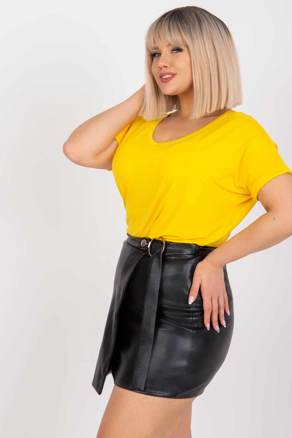 Geltona plius dydžio palaidinė laisvalaikiui Dina.