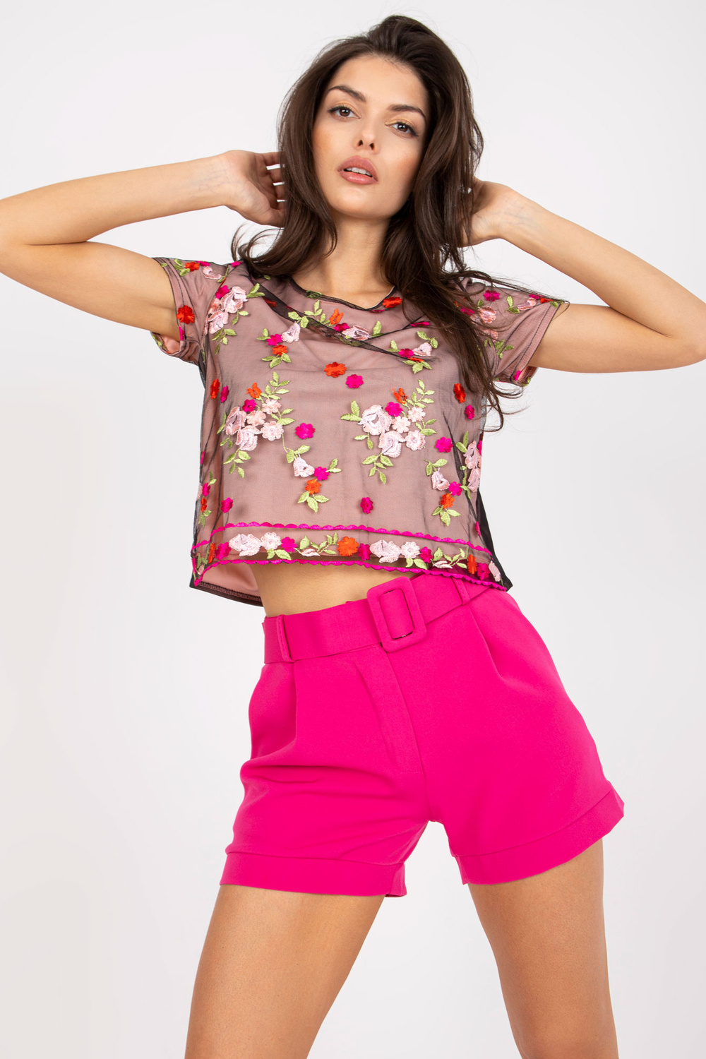 Šviesiai rausva ir juoda palaidinė su siuvinėjimais.