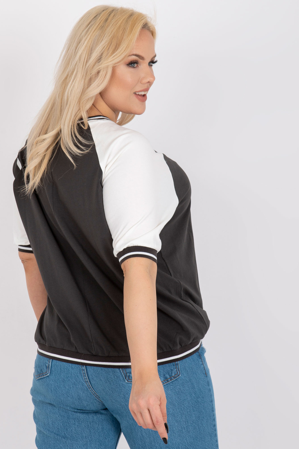 Chaki-whiteplus dydžio palaidinė su V formos iškirpte .