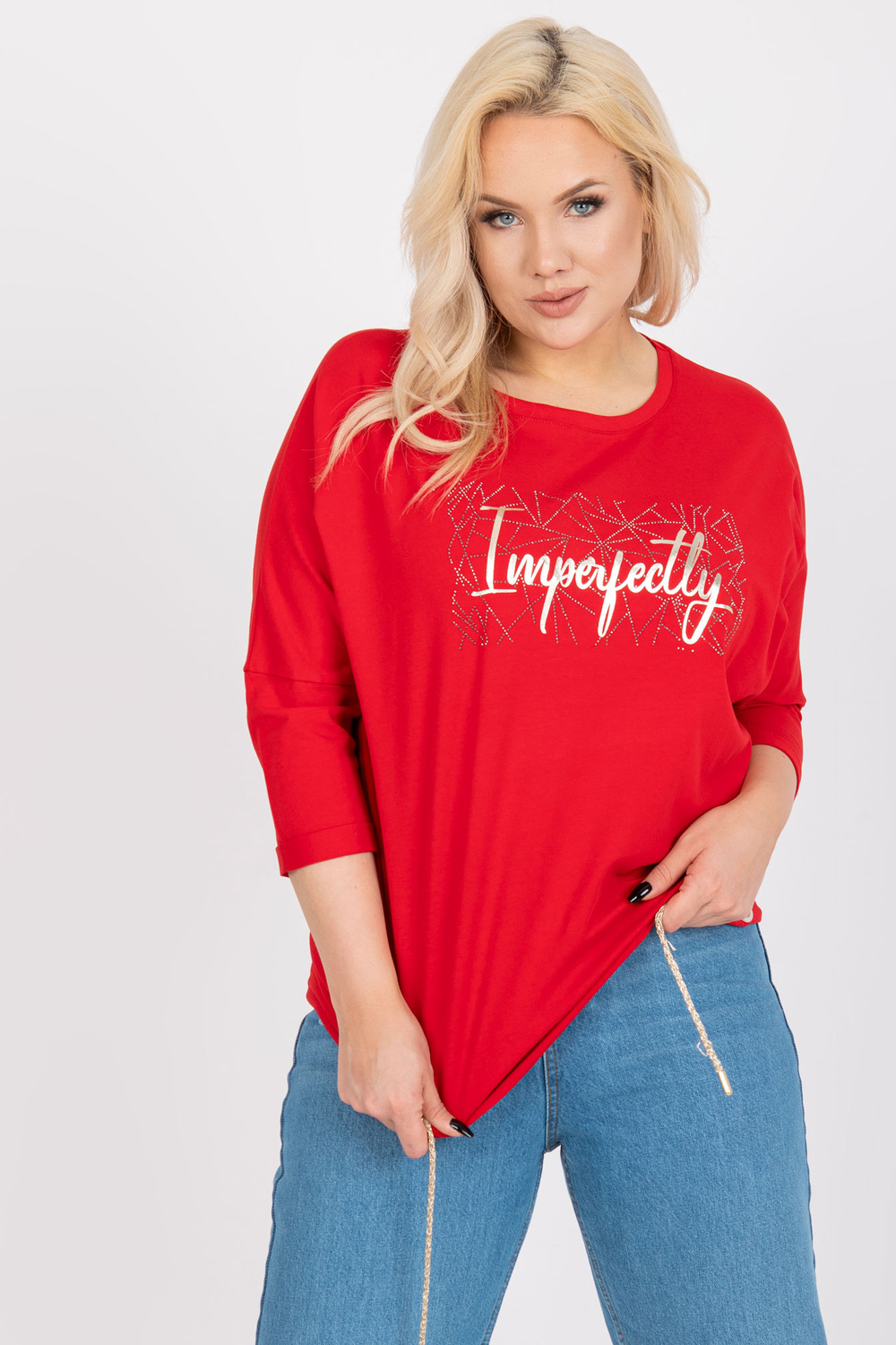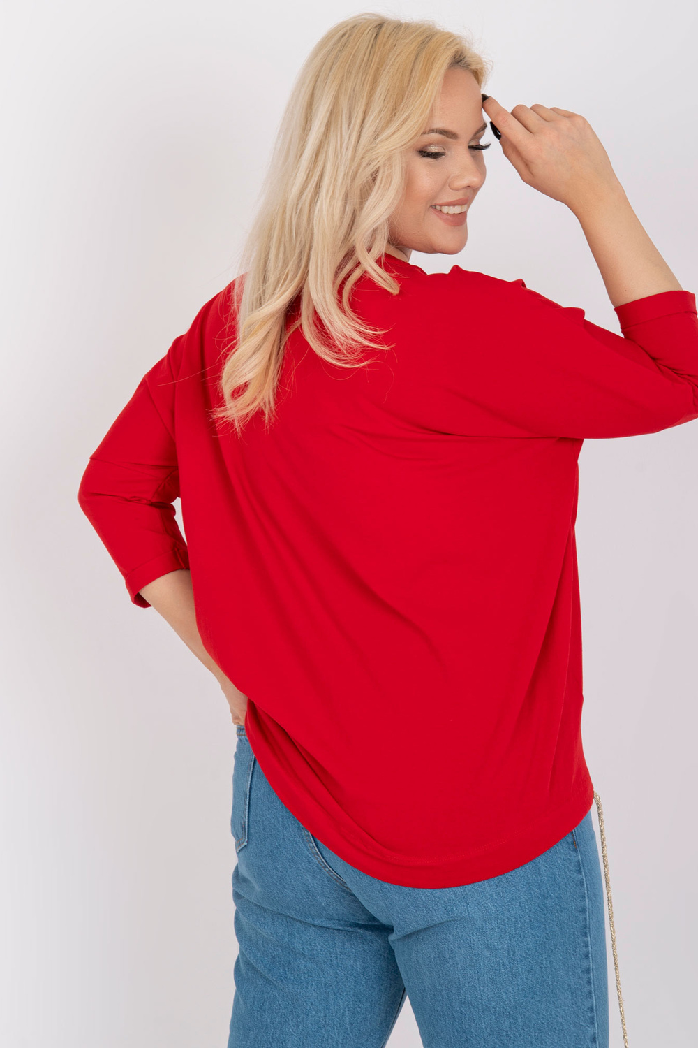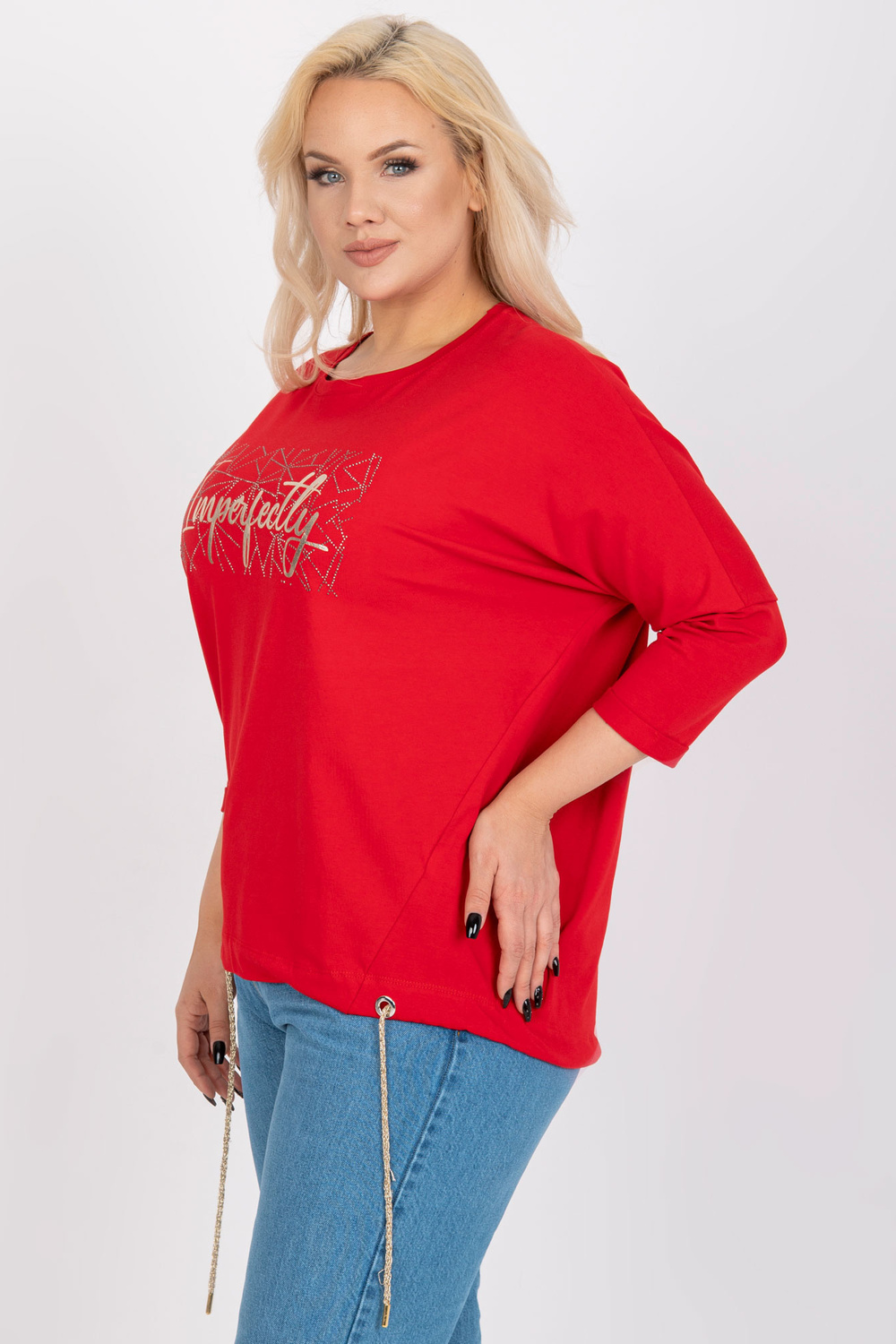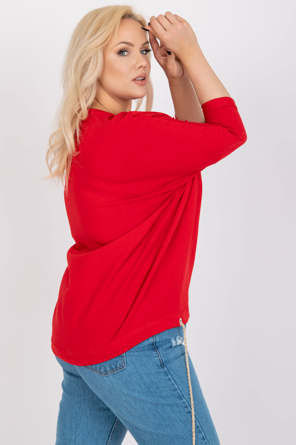 Raudona plius dydžio medvilninė palaidinė su briaunelėmis