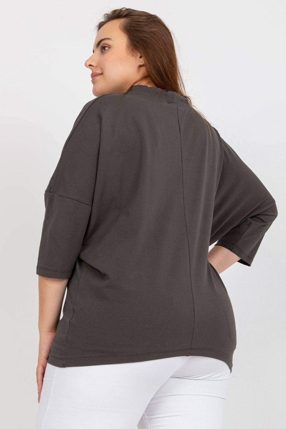Khakiplus dydžio medvilninė palaidinė su aplikacijomis .