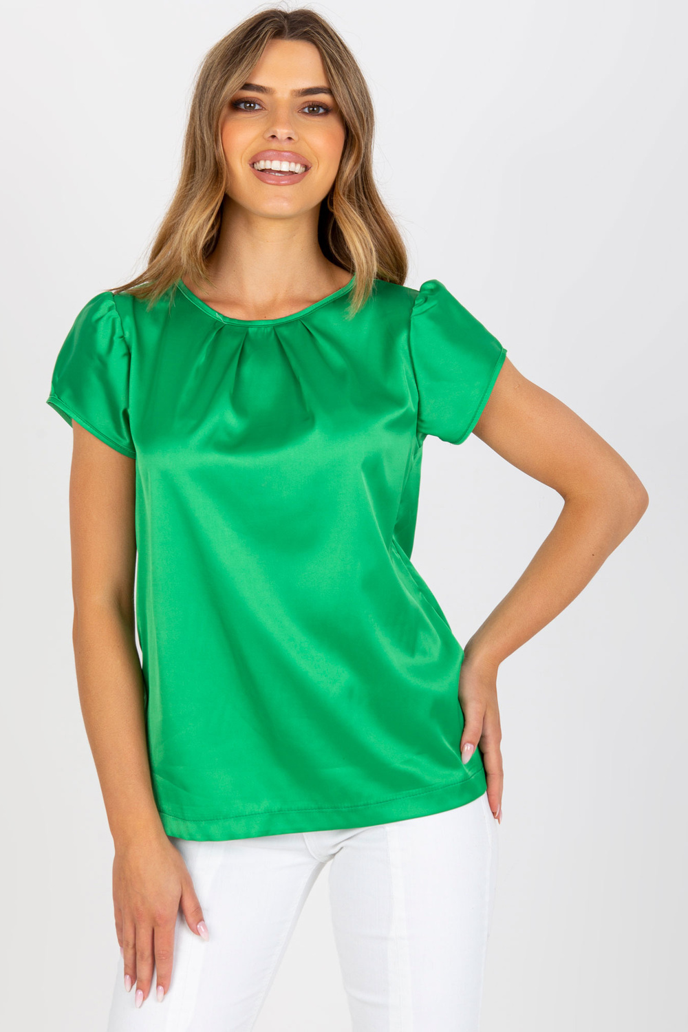 Žalia palaidinė moterims iš dirbtinio atlaso RUE PARIS.