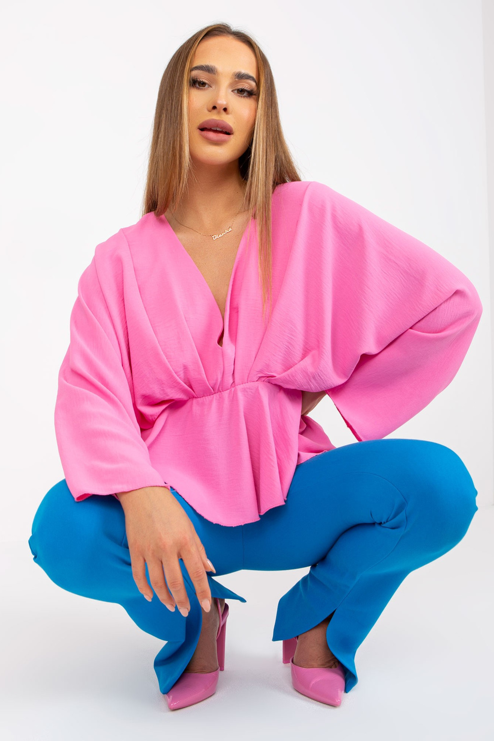 Vieno dydžio rožinė palaidinė su Raquel V formos iškirpte .
