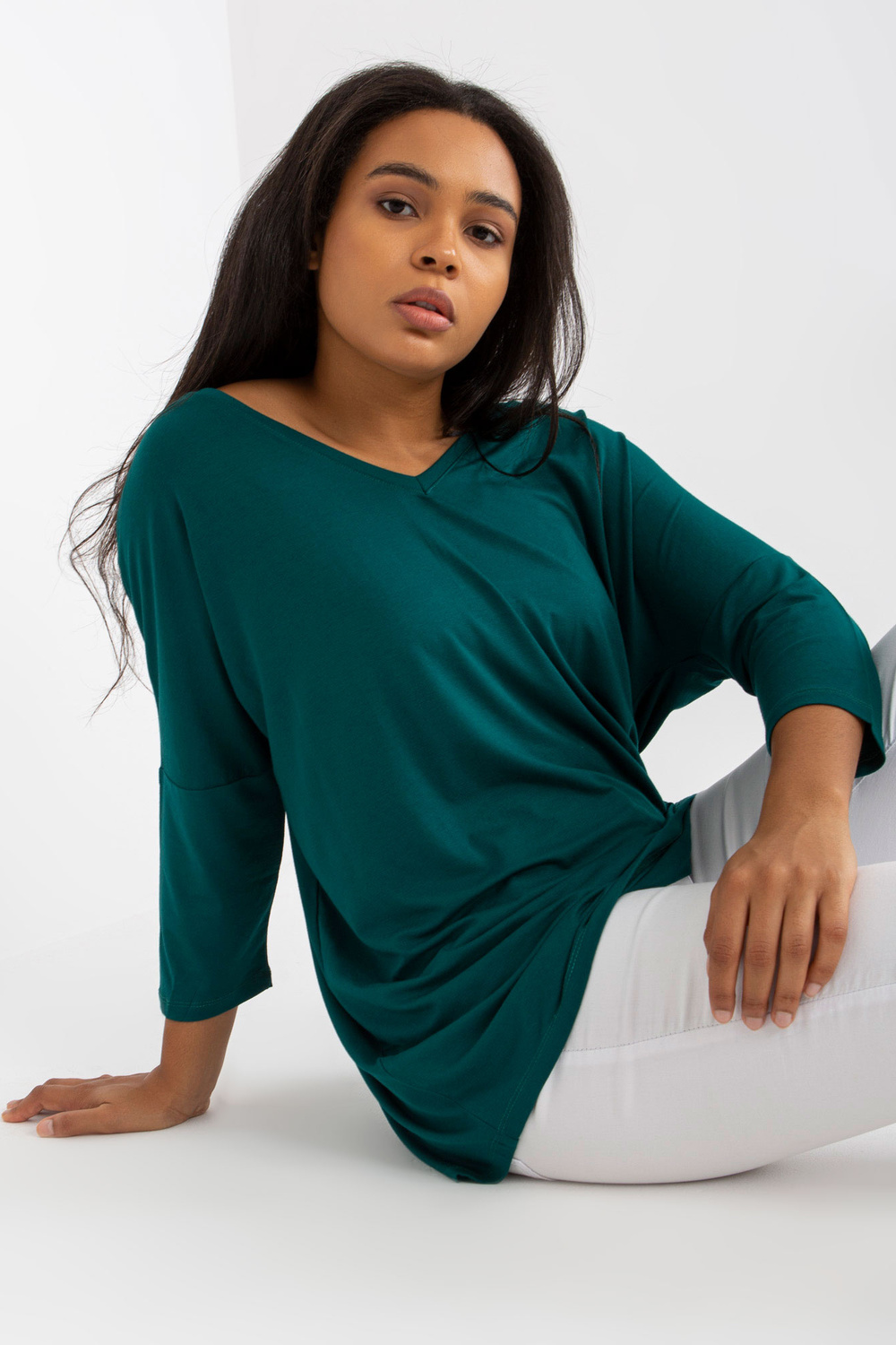 Tamsiai žalios viskozės plius dydžio palaidinė su 3/4 rankovėmis .
