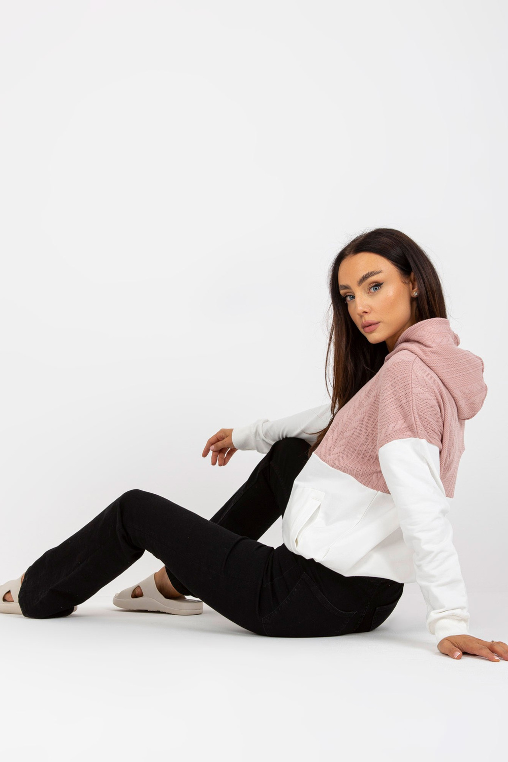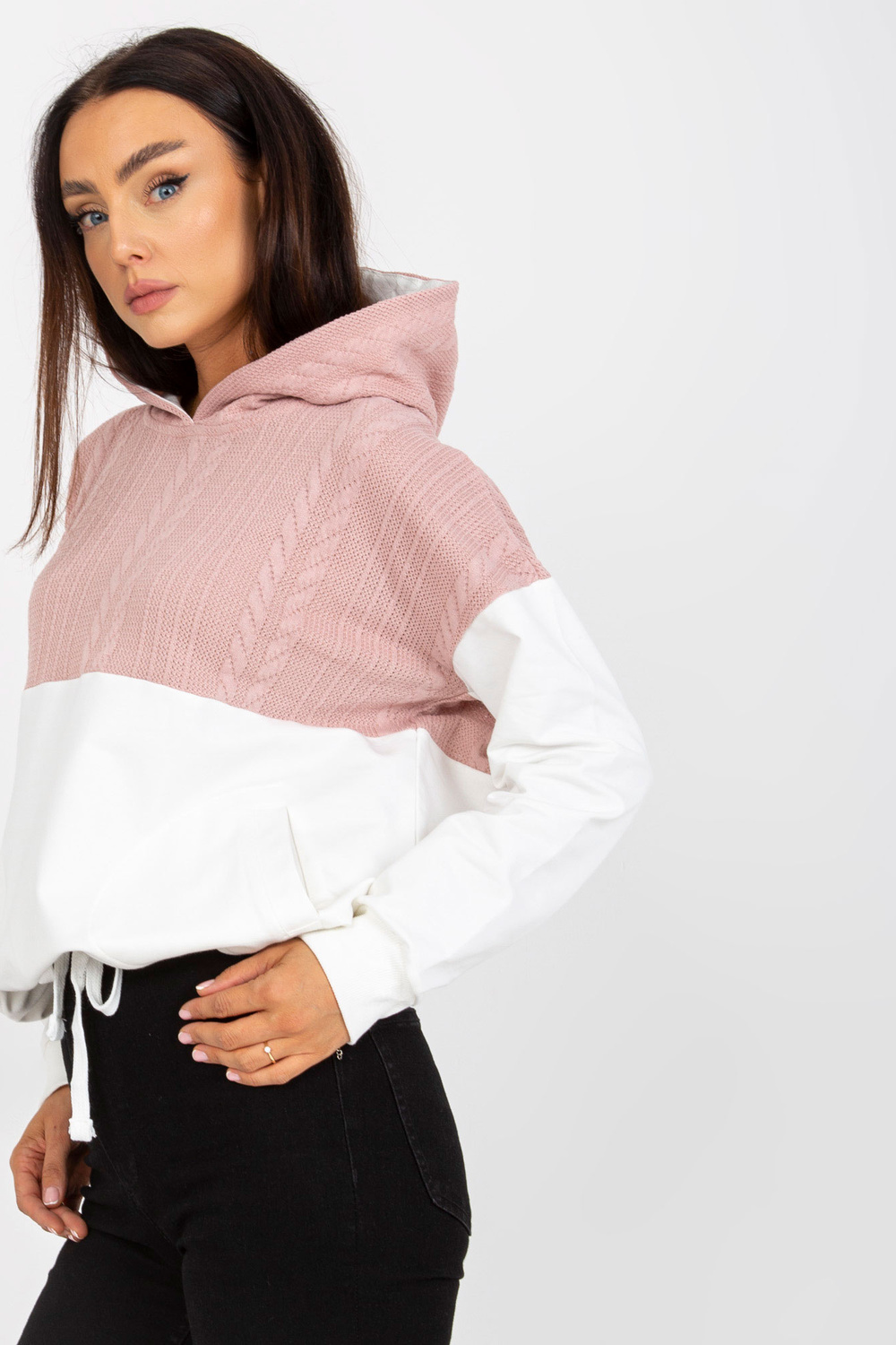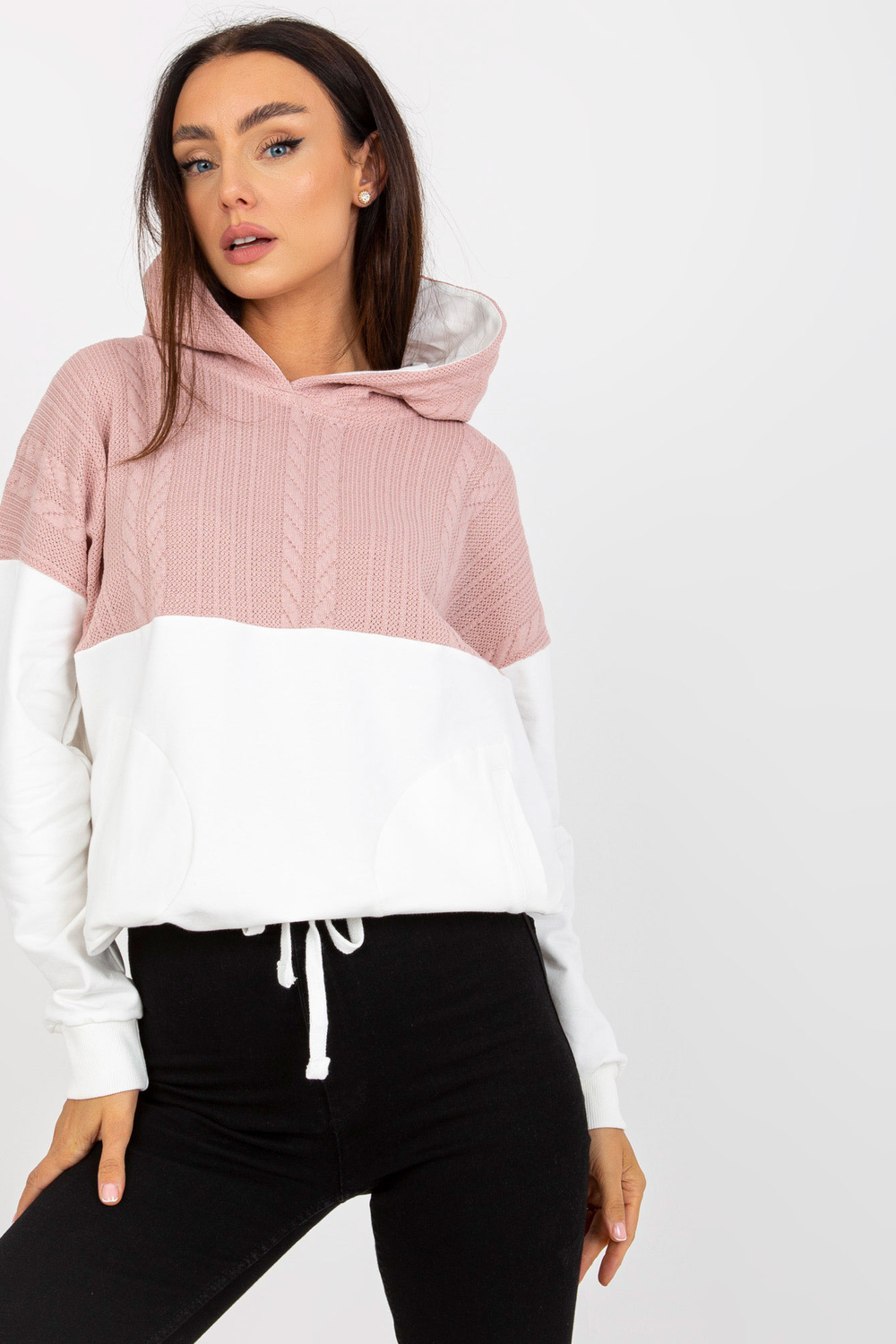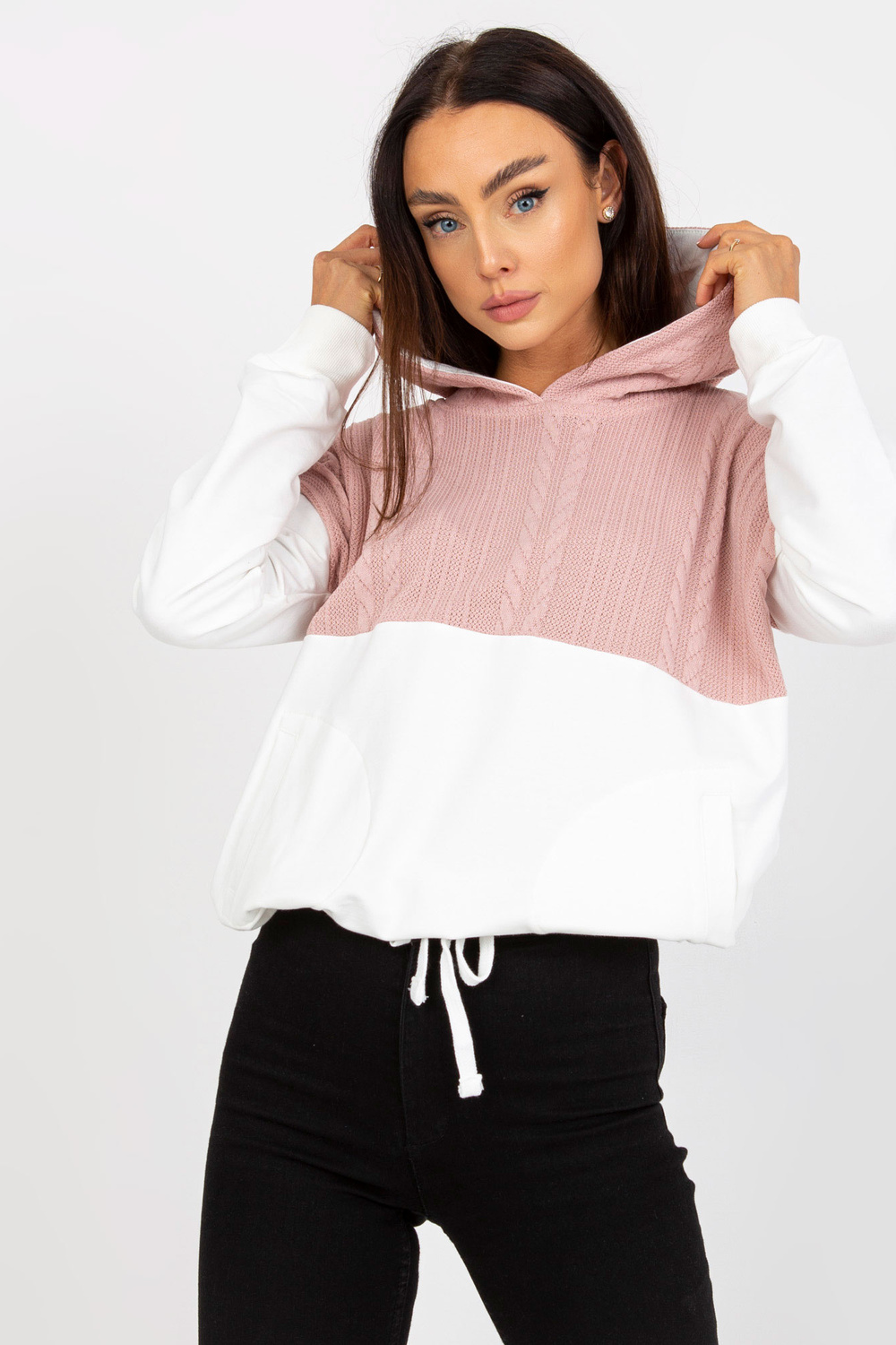 Rožinės spalvos balti megztiniai su gobtuvu ir kišenėmis RUE PARIS .