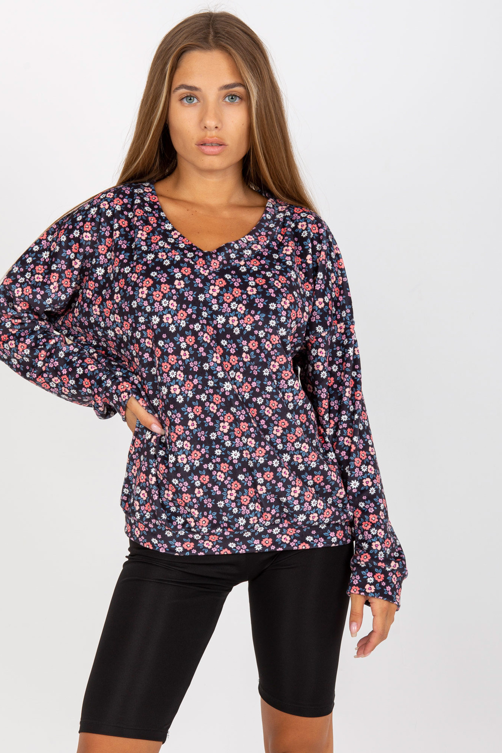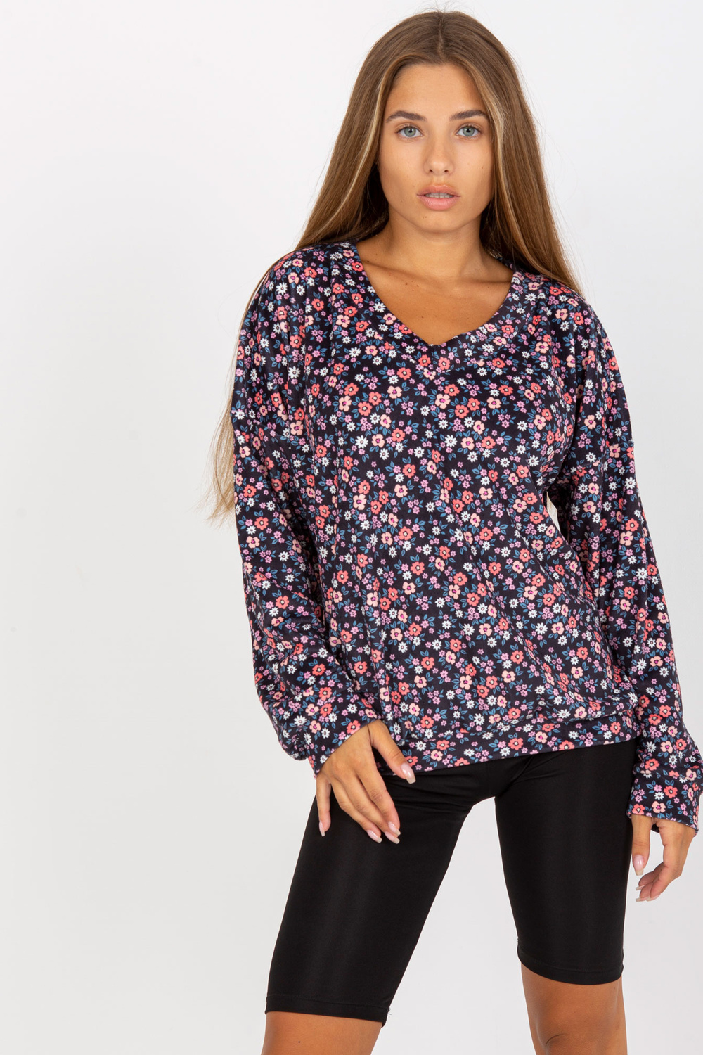 Mėlyna veliūrinė palaidinė su viskozės gėlėmis RUE PARIS .