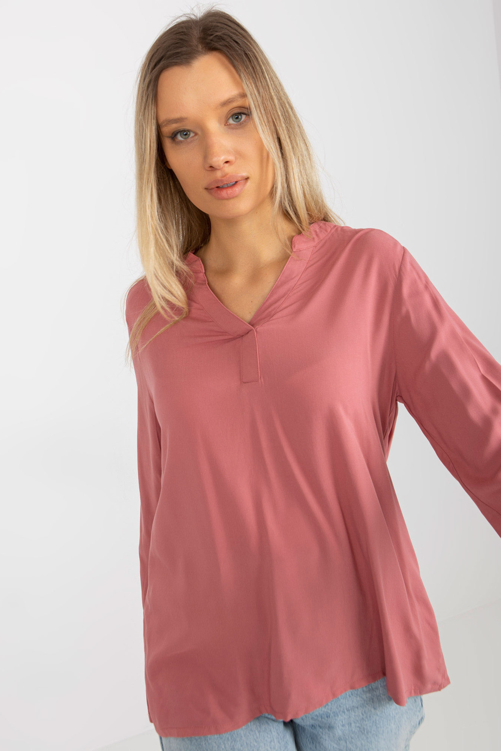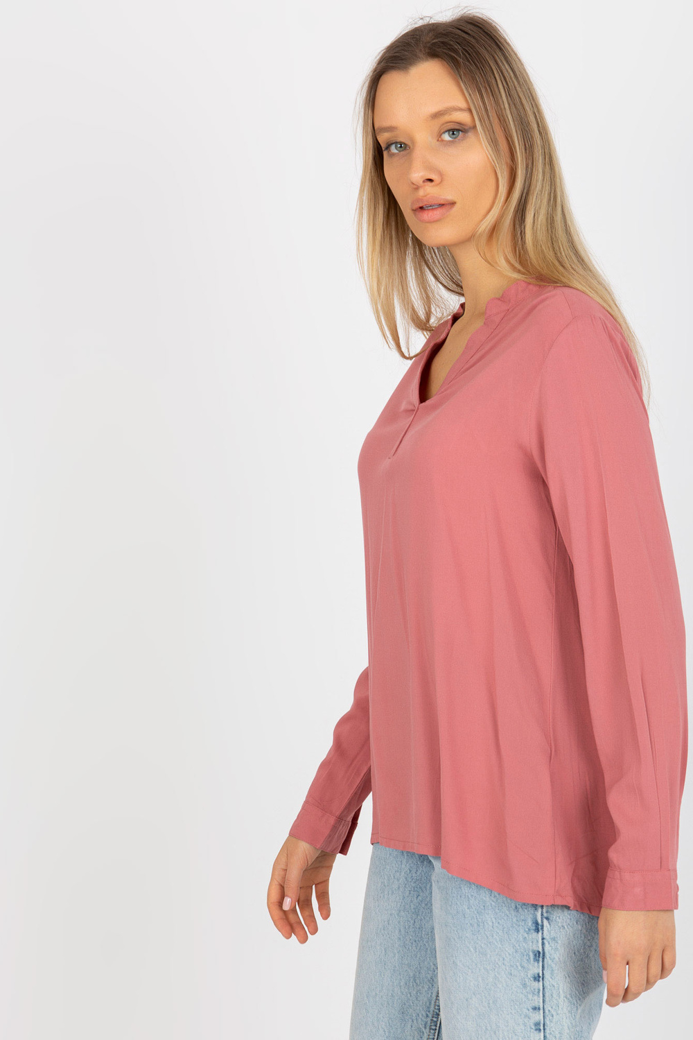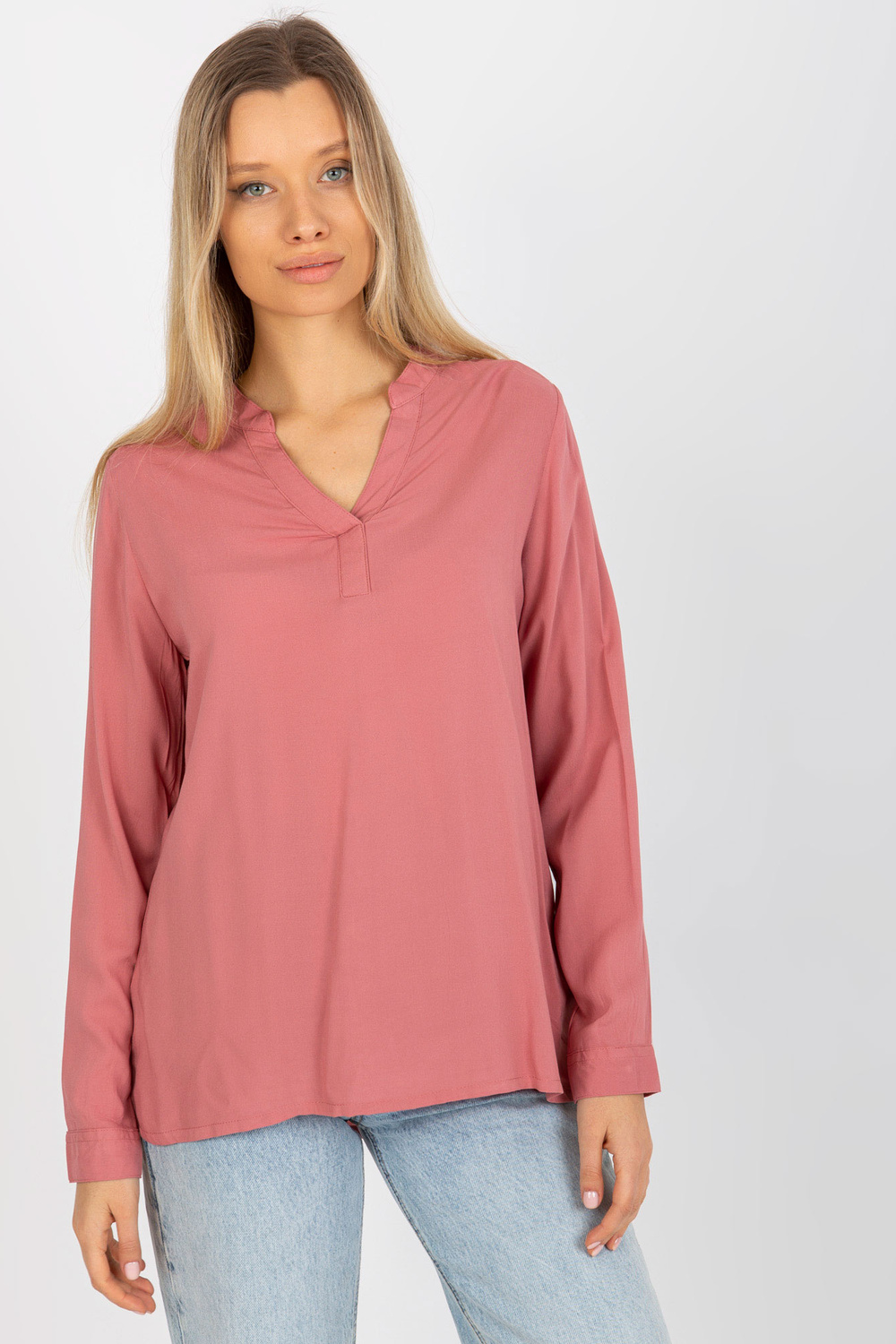 Dulkėta rožinė lygi palaidinė su V formos iškirpte SUBLEVEL .