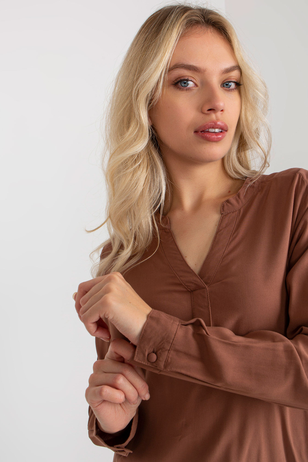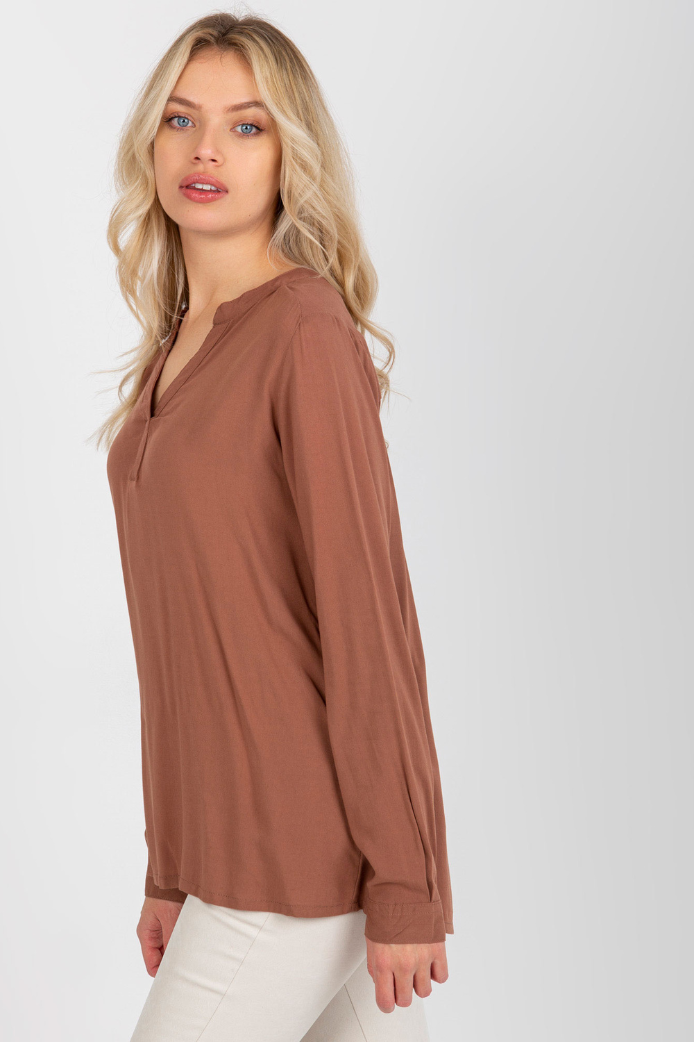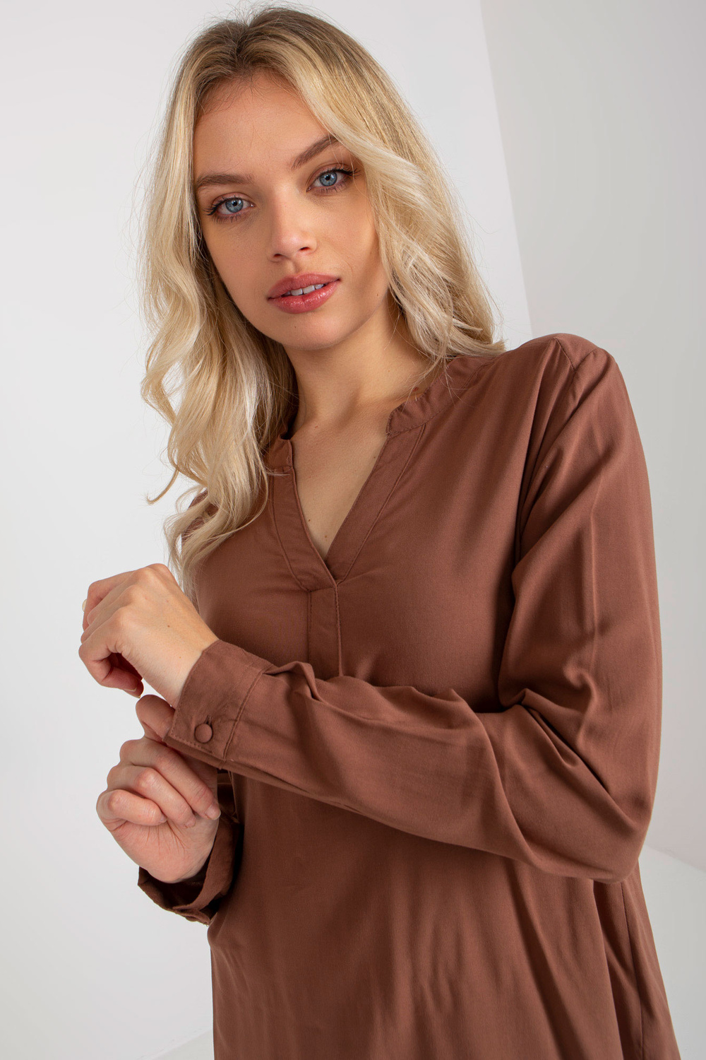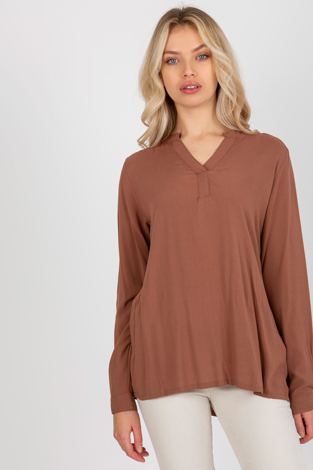 Ruda laisva palaidinė su V formos iškirpte SUBLEVEL< /strong> .