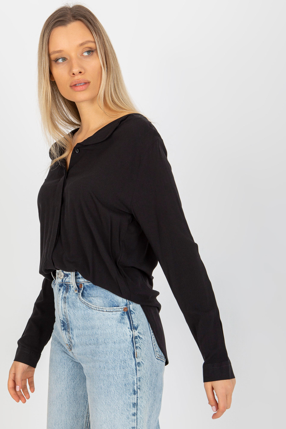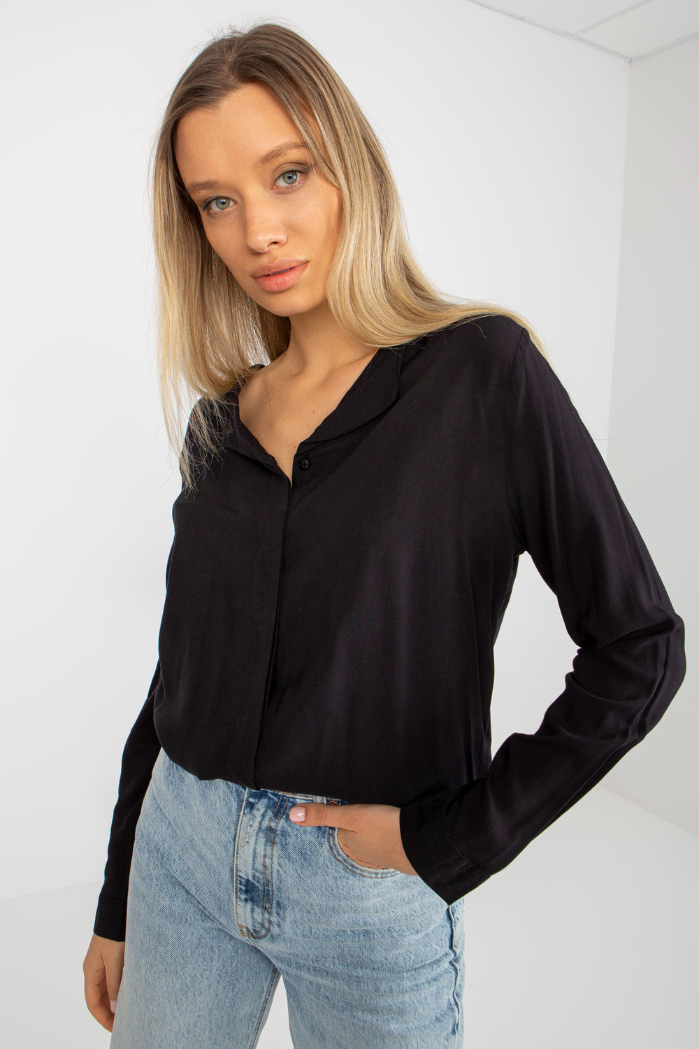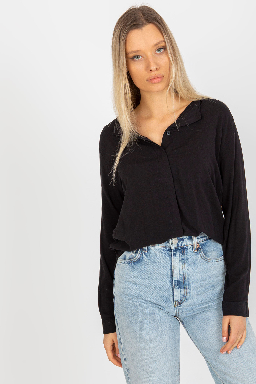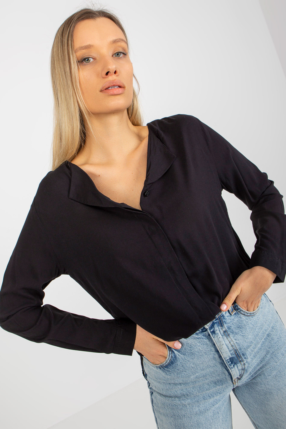 Juodos viskozės marškinių palaidinė su V formos iškirpte SUBLEVEL .