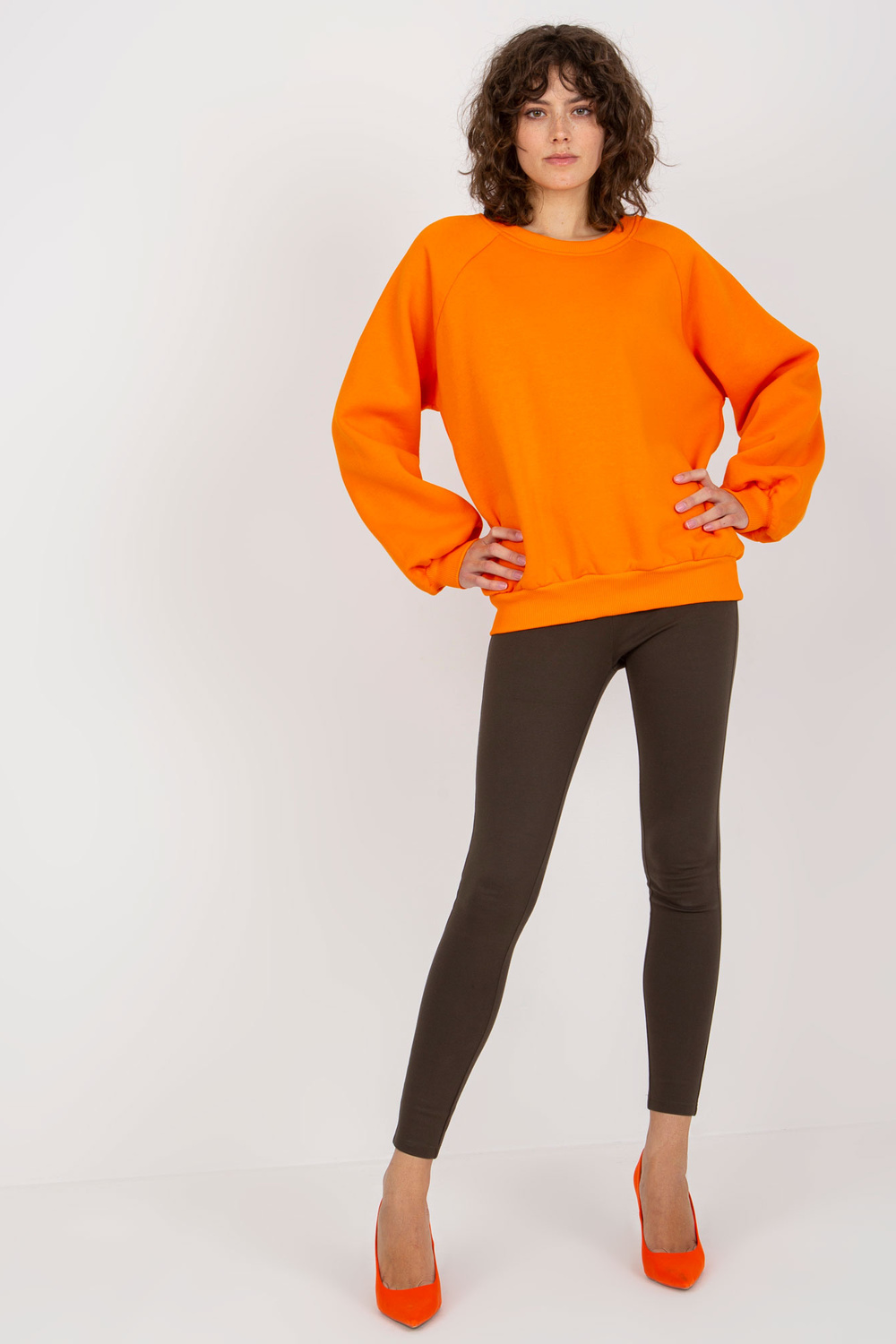 Oranžinės spalvos megztinis, paprastas didelio kirpimo.