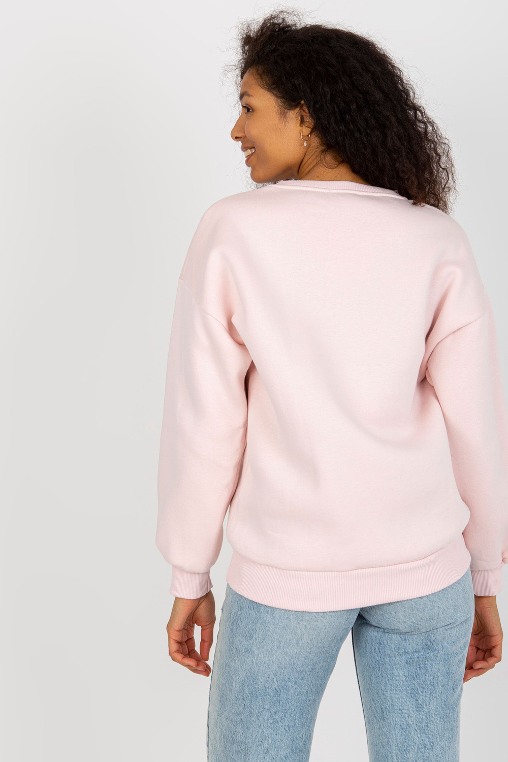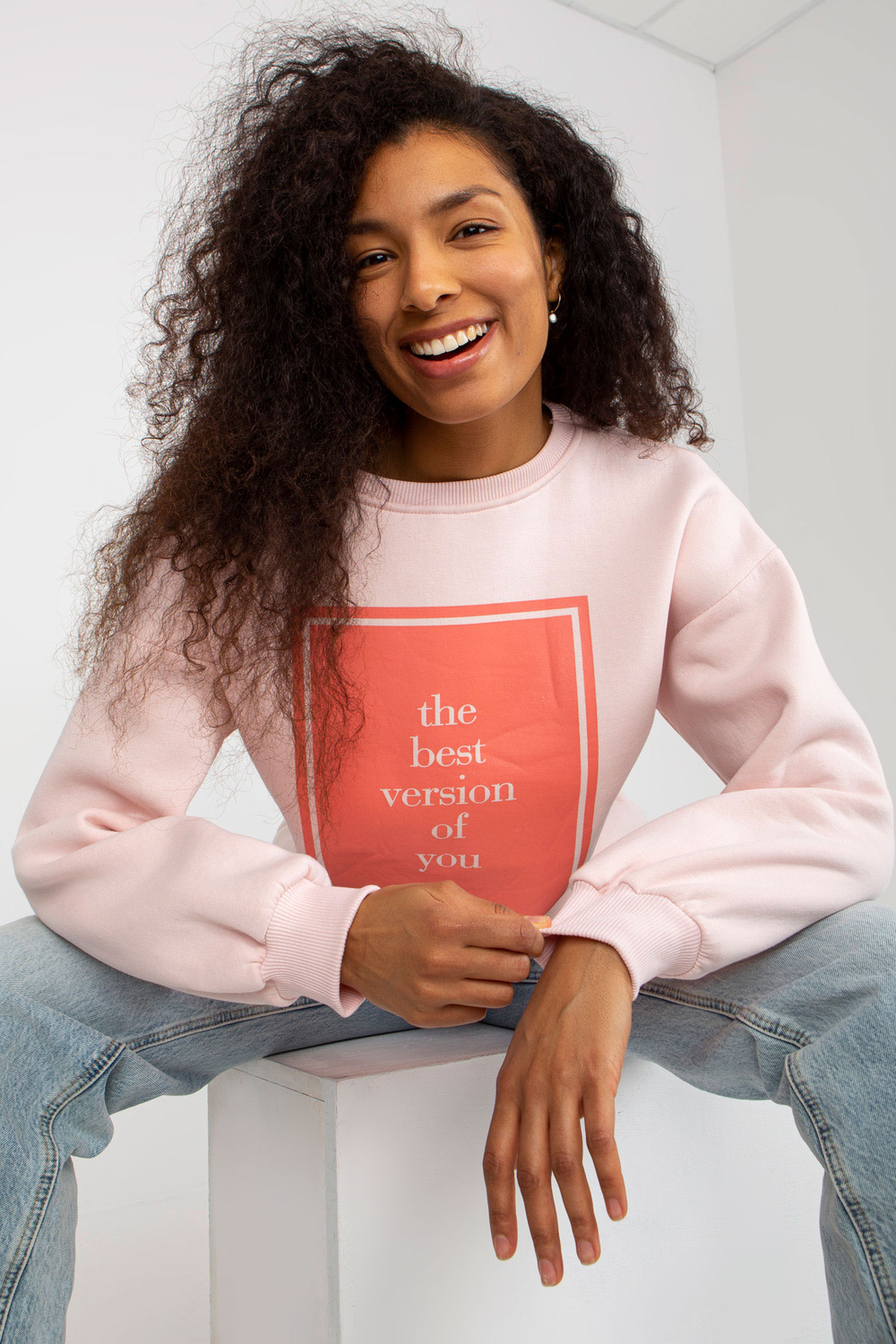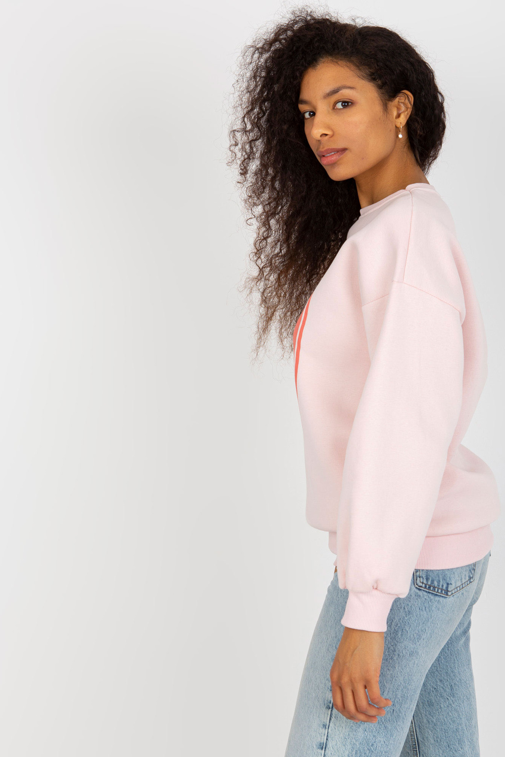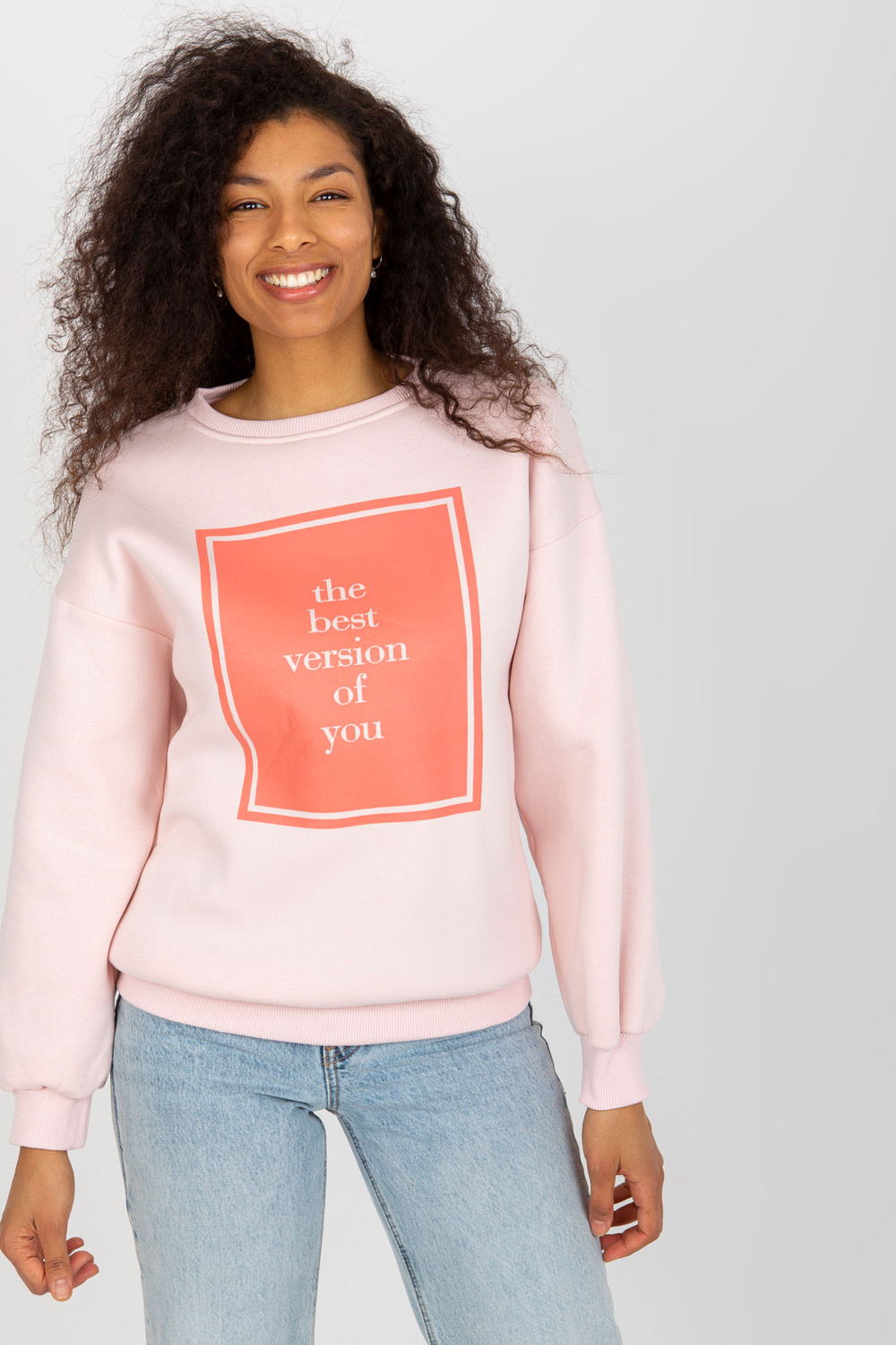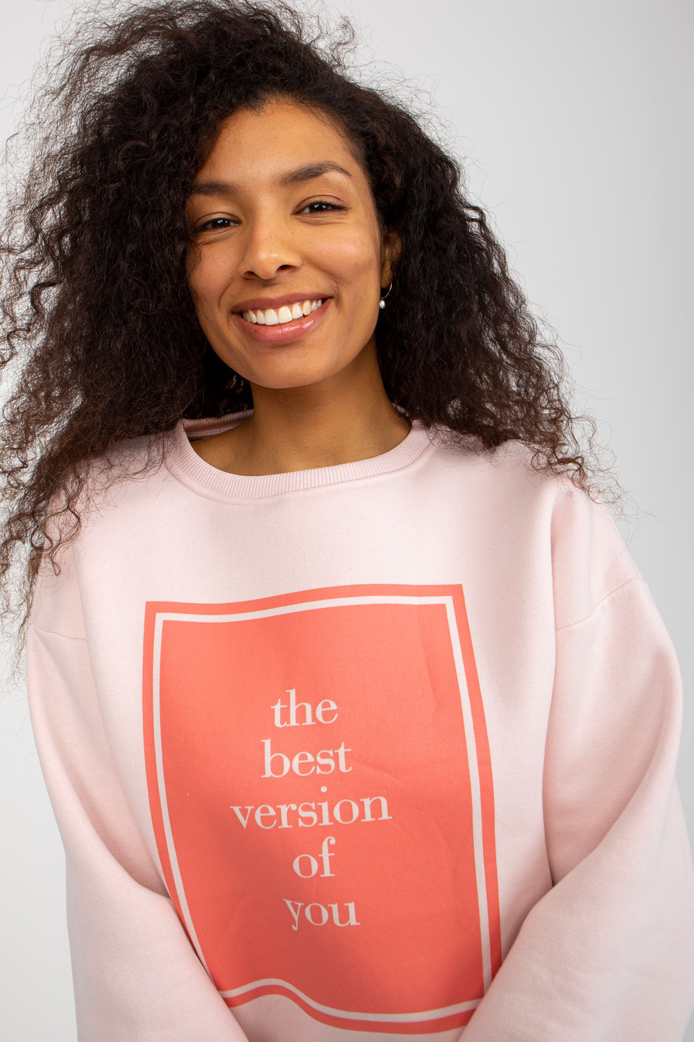 Blyškiai rausvos spalvos negabaritinis megztinis su raštu.