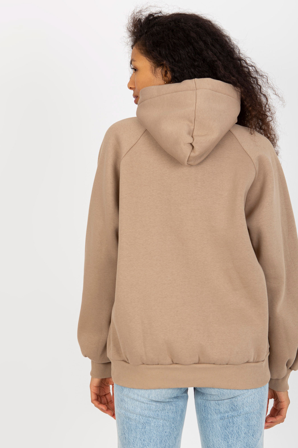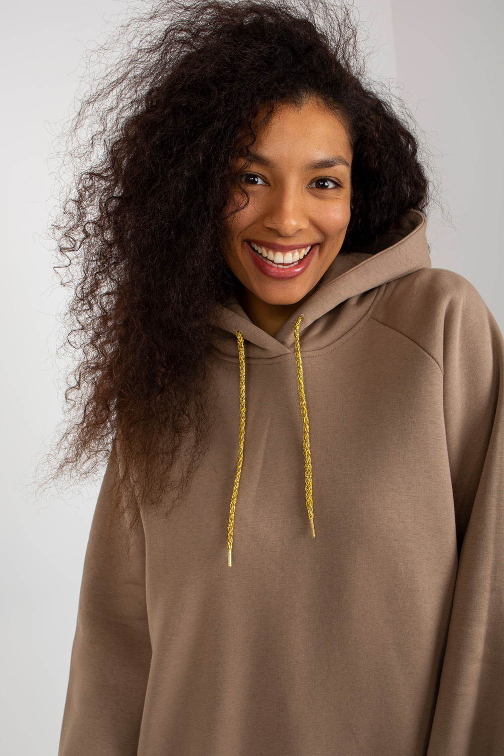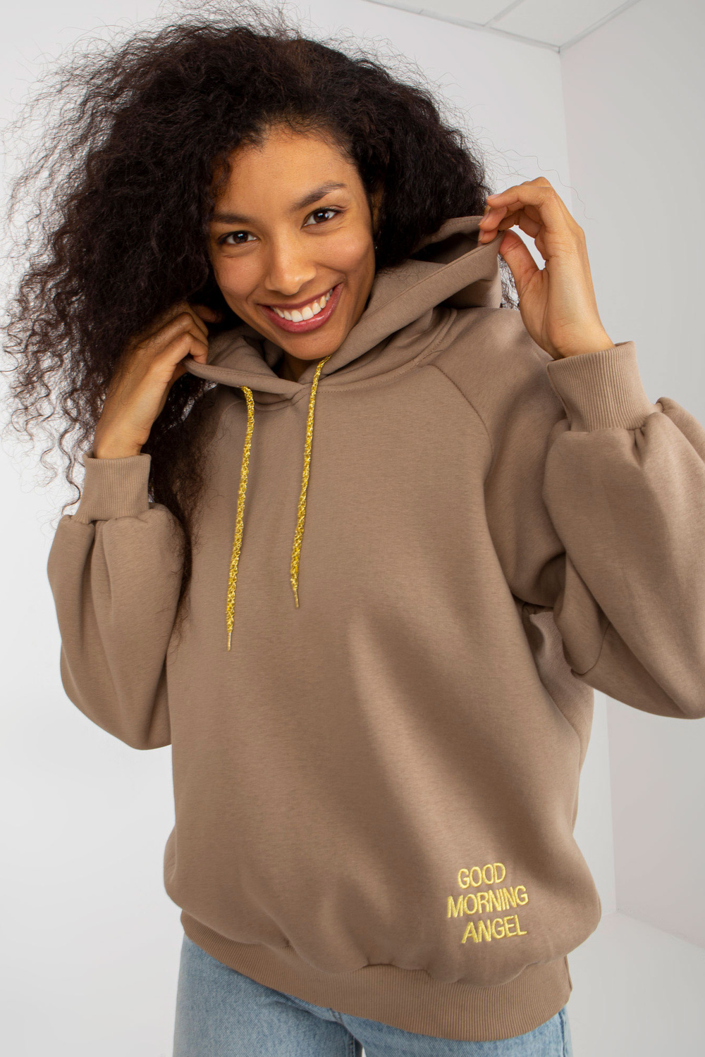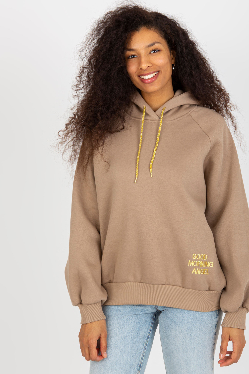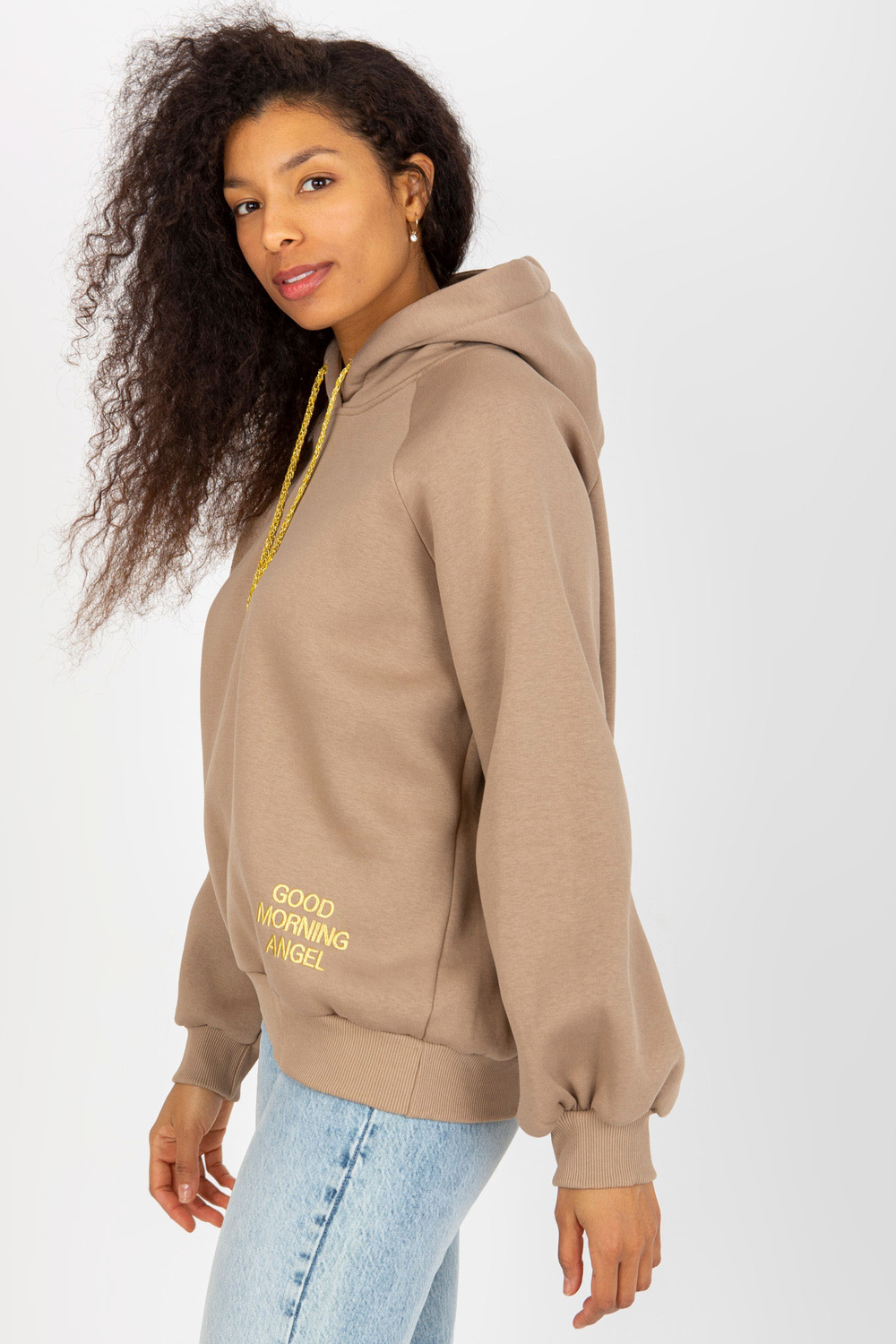 Tamsiai smėlio spalvos oversize megztinis su gobtuvu ir Diego siuvinėjimu.