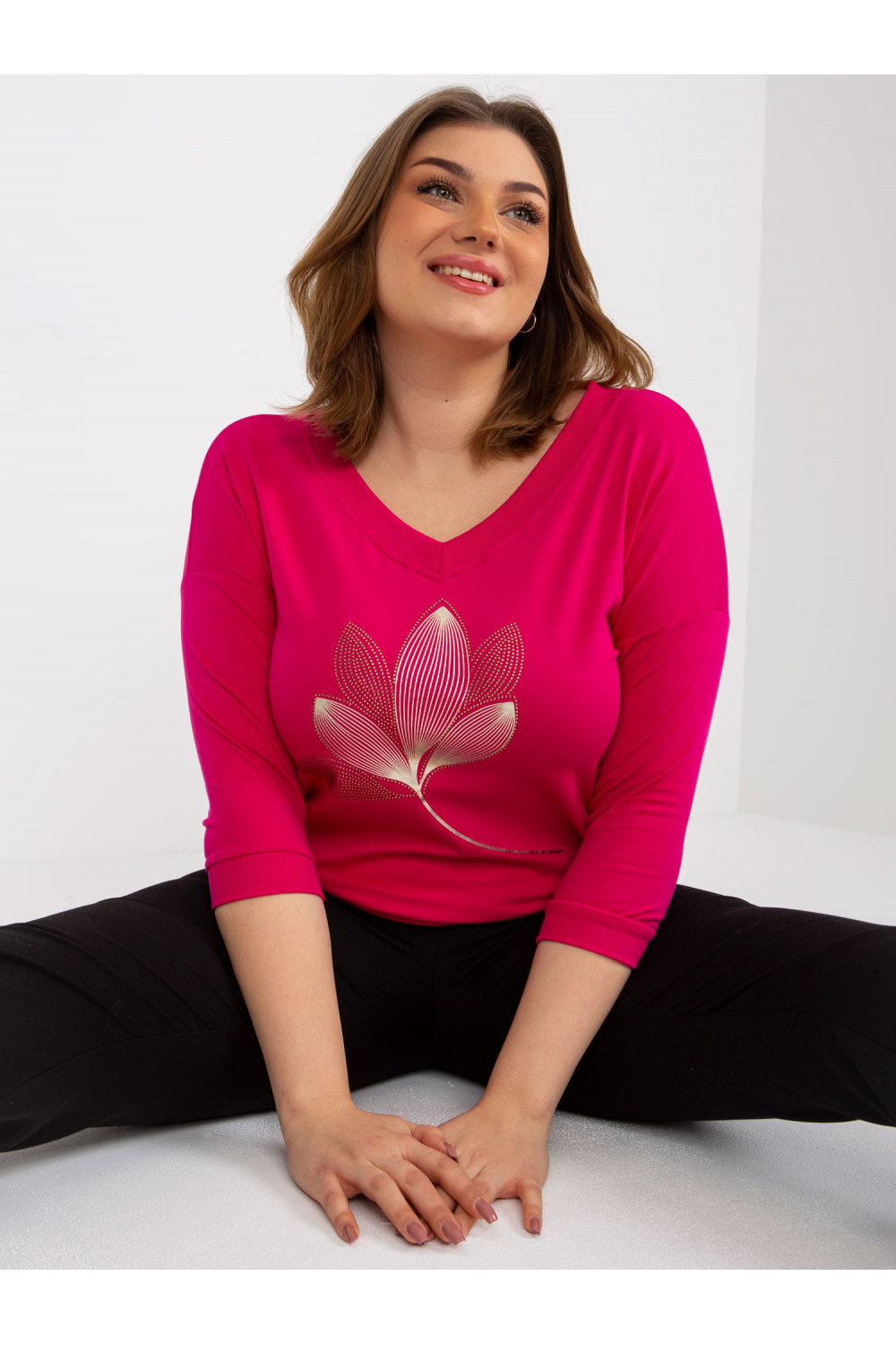 Fuksijos spalvos plius dydžio palaidinė su V formos iškirpte.