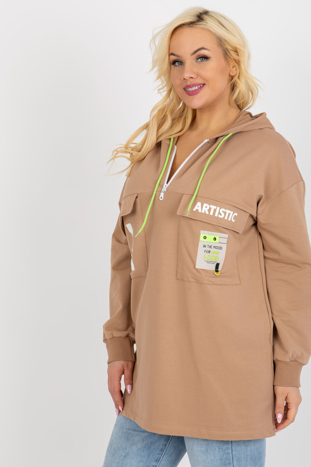 Camel ilgesnis plius dydžio megztinis su kišenėmis.
