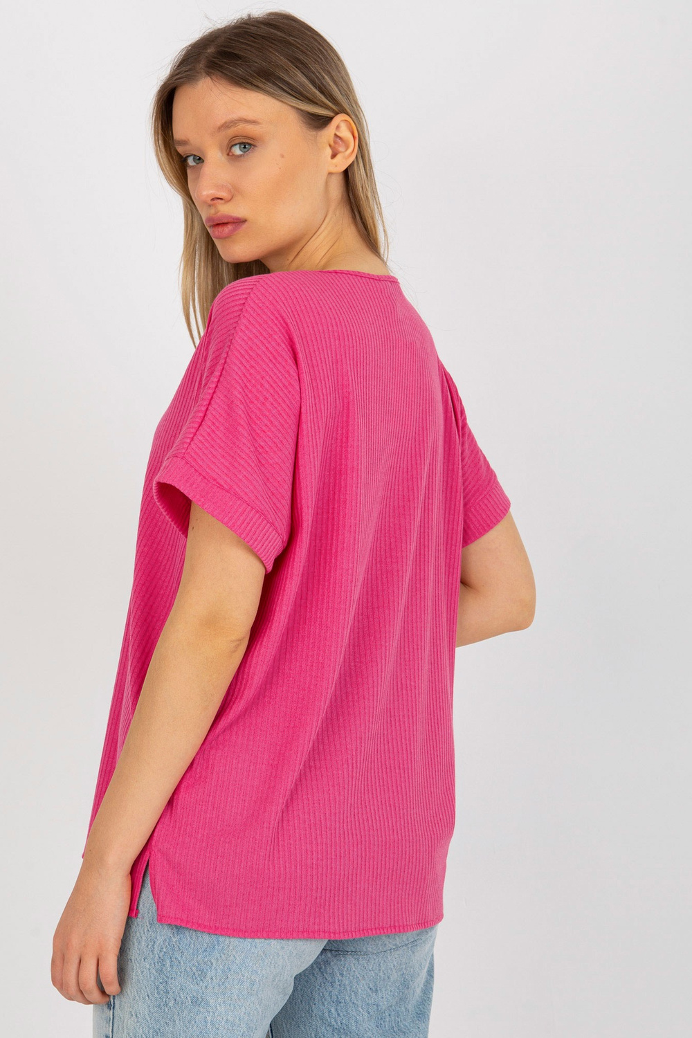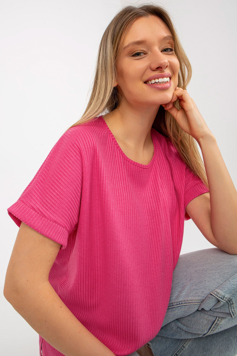 Tamsiai rožinė oversize palaidinė su trumpomis rankovėmis juostelėmis.
