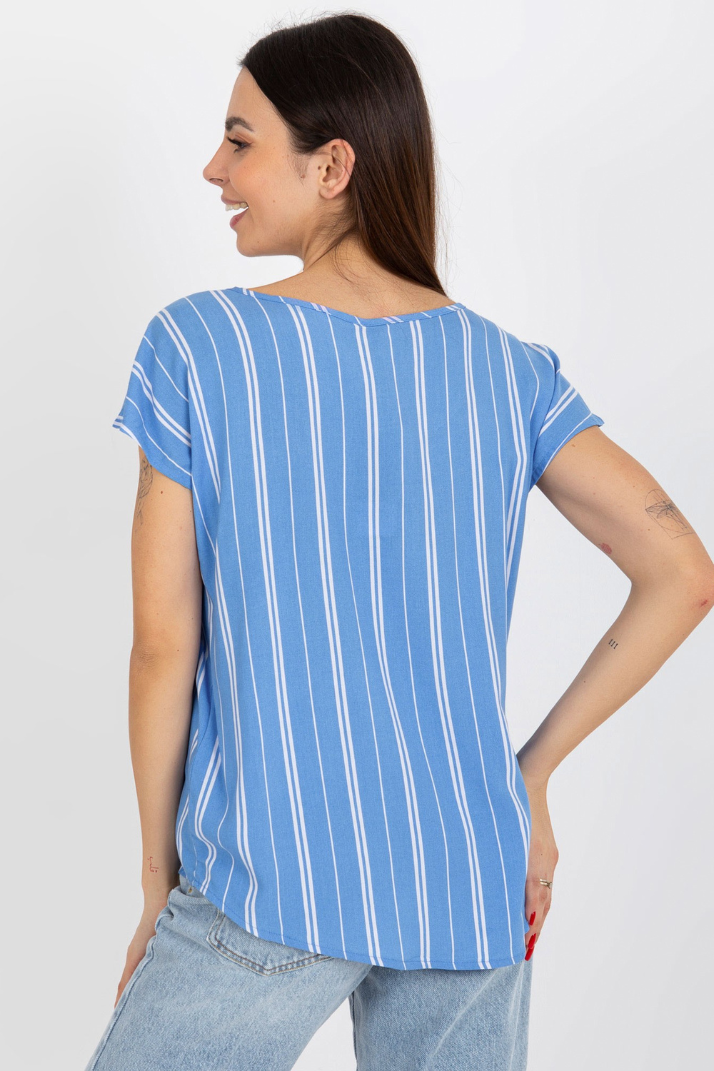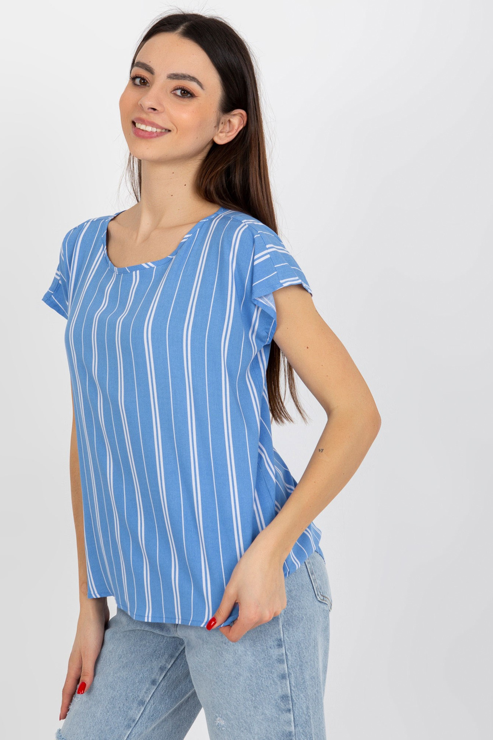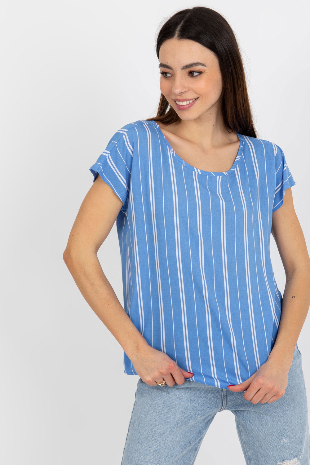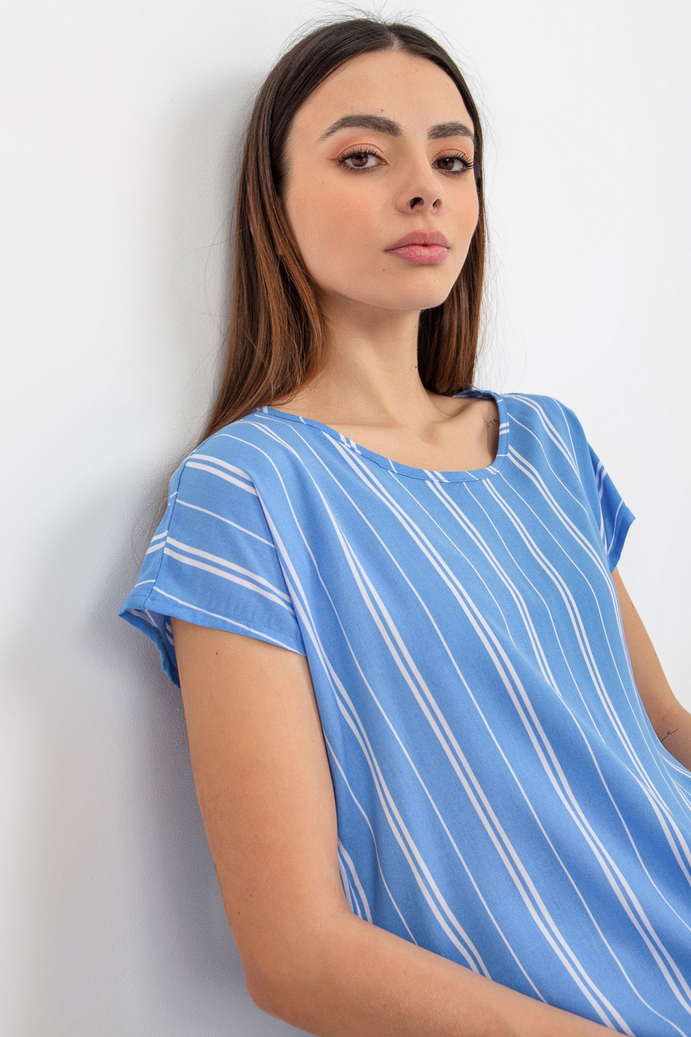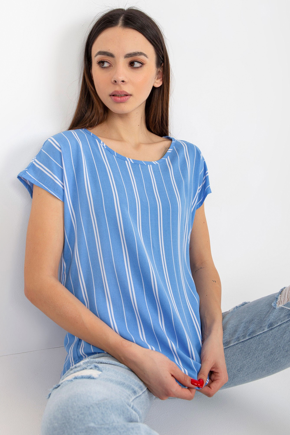 Mėlyna moteriška viskozės dryžuota palaidinė SUBLEVEL